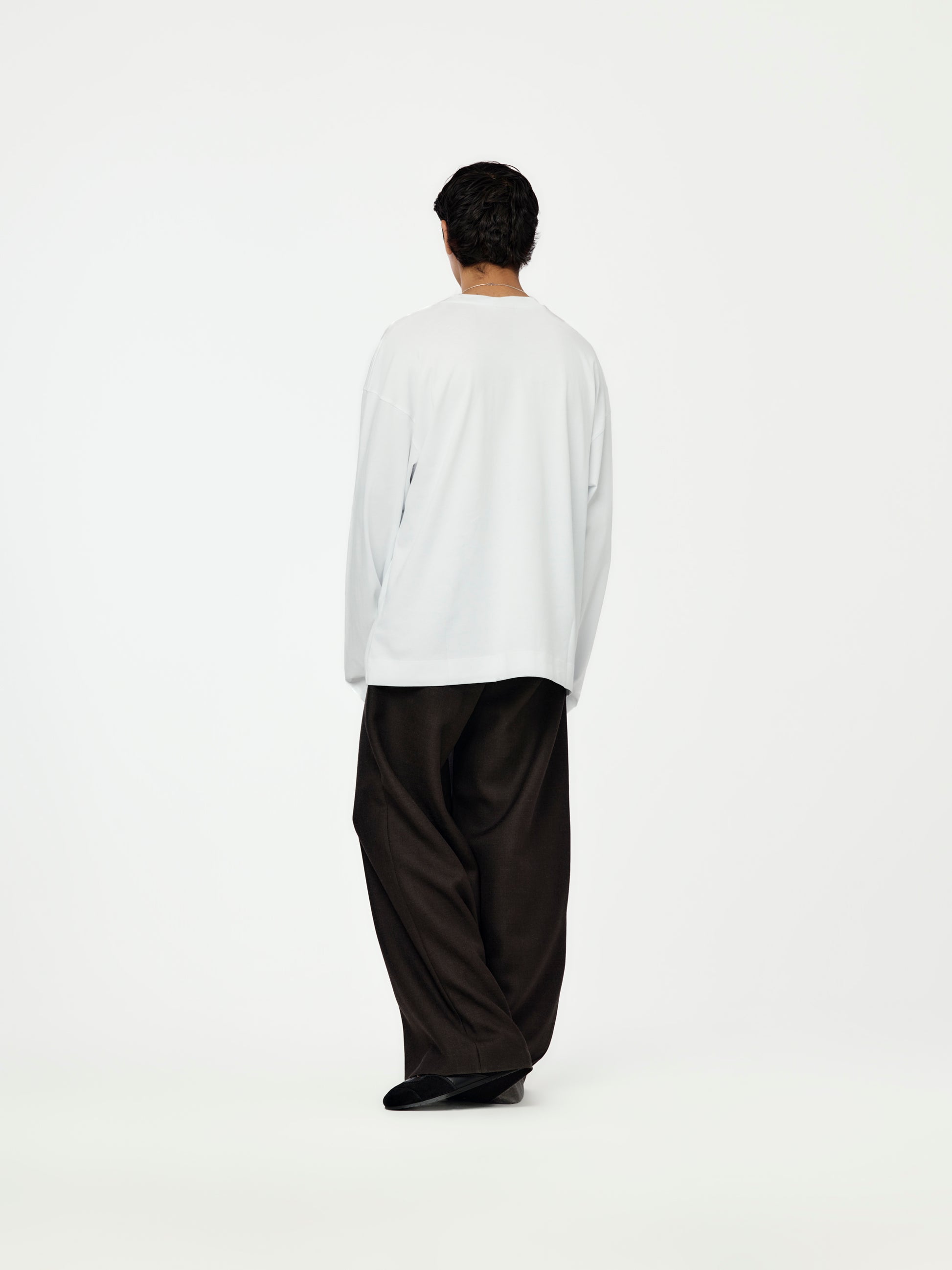 Crisp white iteration of the Hegland tee—long sleeve cut, stripped back styling, versatility built in.
