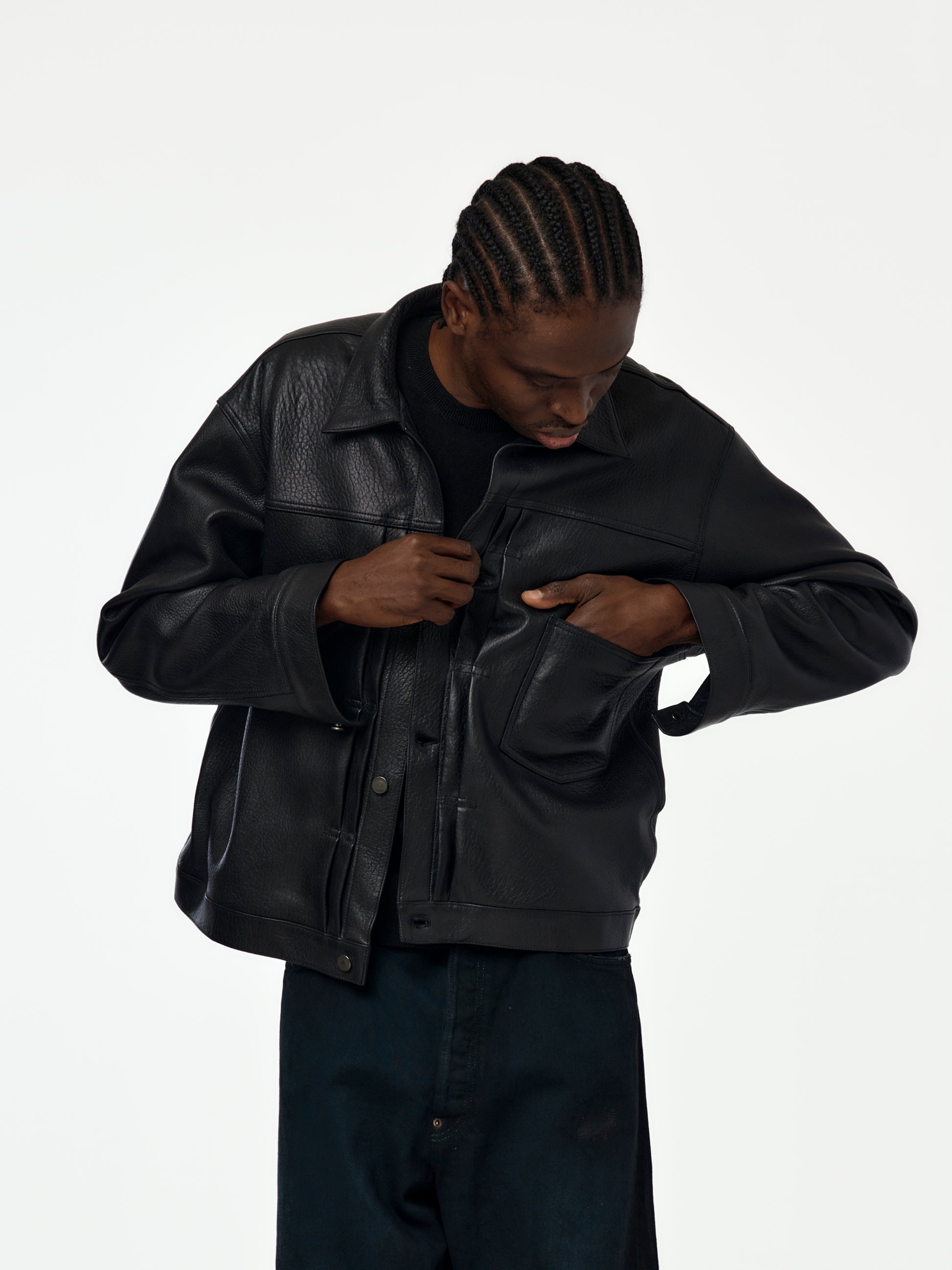 A.PRESSE reworks its signature 1st Type silhouette in a clean all-black make-up crafted exclusively for Union. Cut from supple premium leather, the jacket carries the brand’s quiet precision: minimal hardware, a trim vintage-inspired fit, and that worn-in attitude A.PRESSE is known for. Understated, elevated, and built to live in — a timeless staple done the Union way.