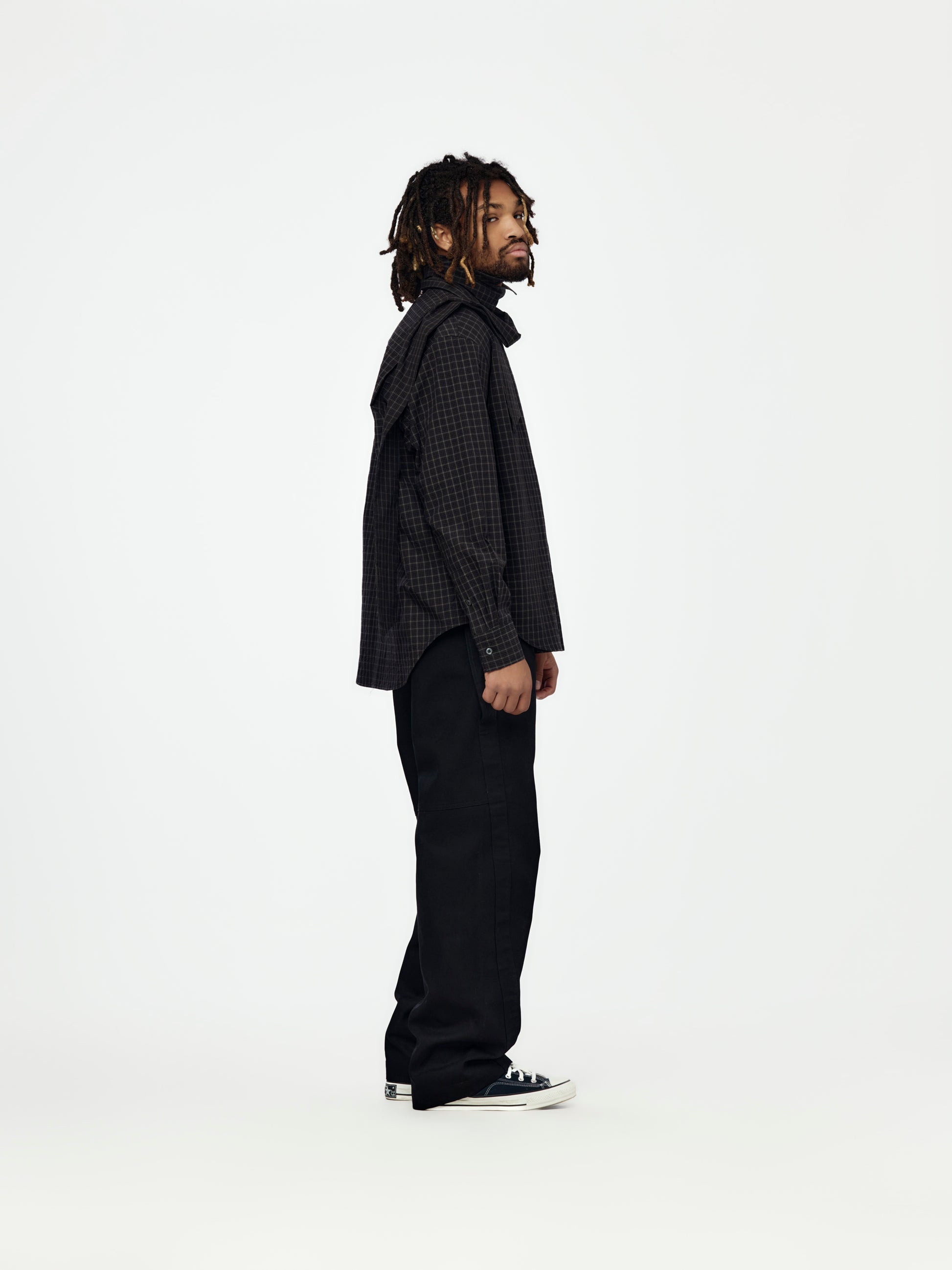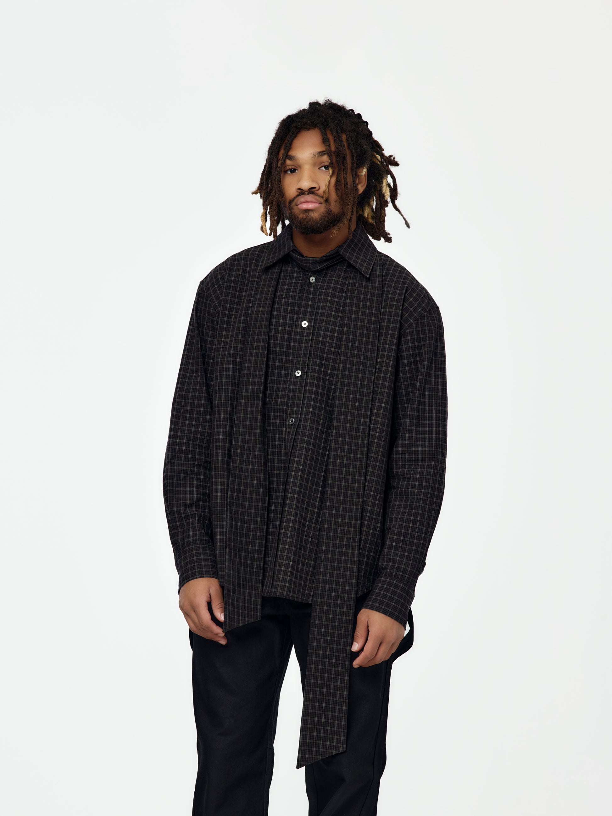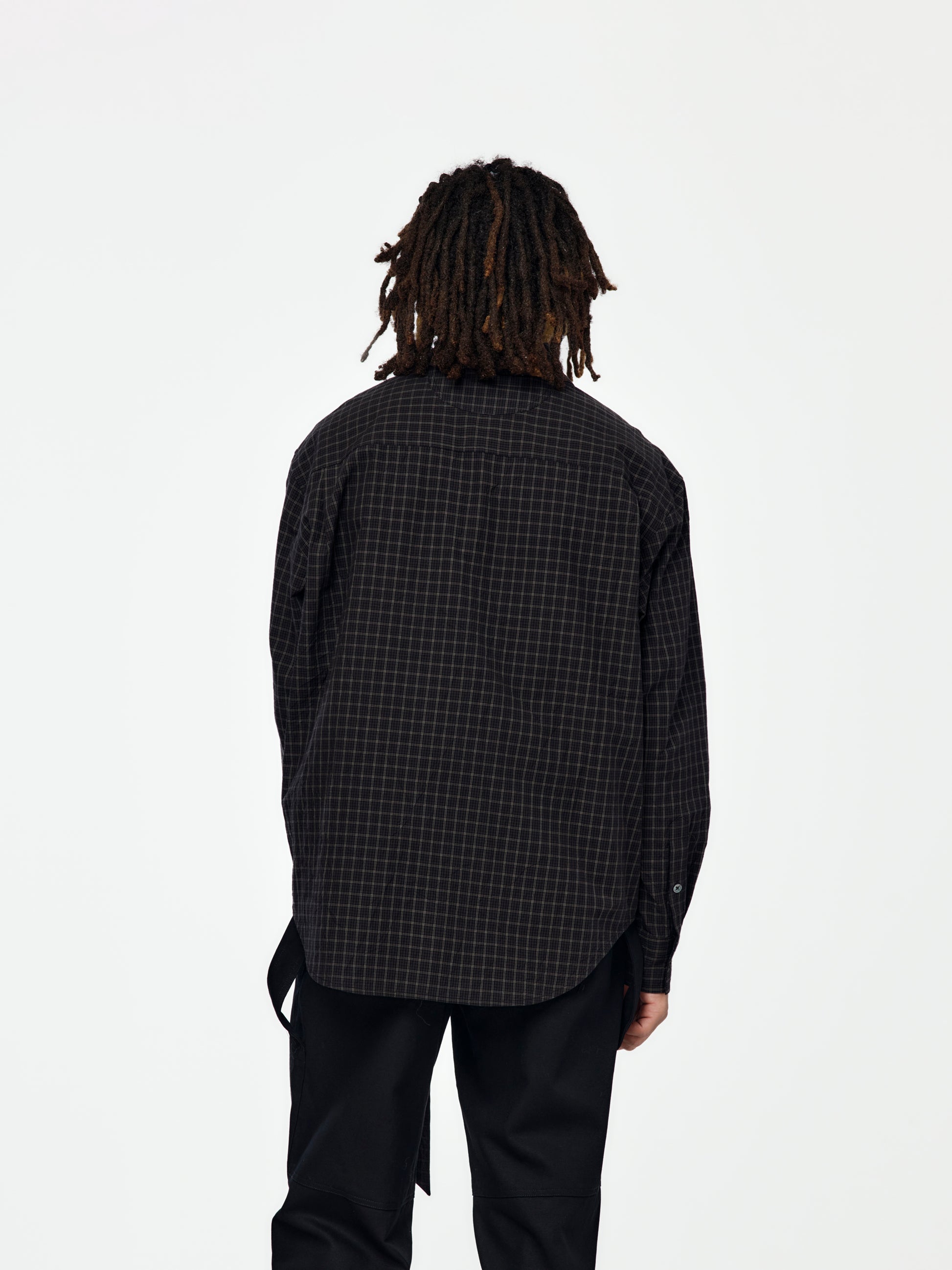 Classic tailoring with a downtown shift. The Banker Shirt updates a traditional plaid button-down with an oversized silhouette and dropped shoulders. Crafted from lightweight cotton poplin, it bridges formality and ease — part workwear, part off-duty uniform.