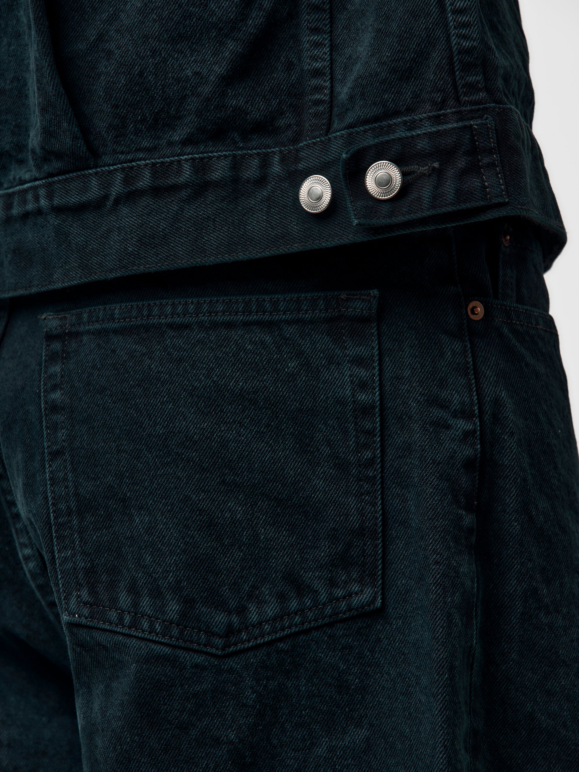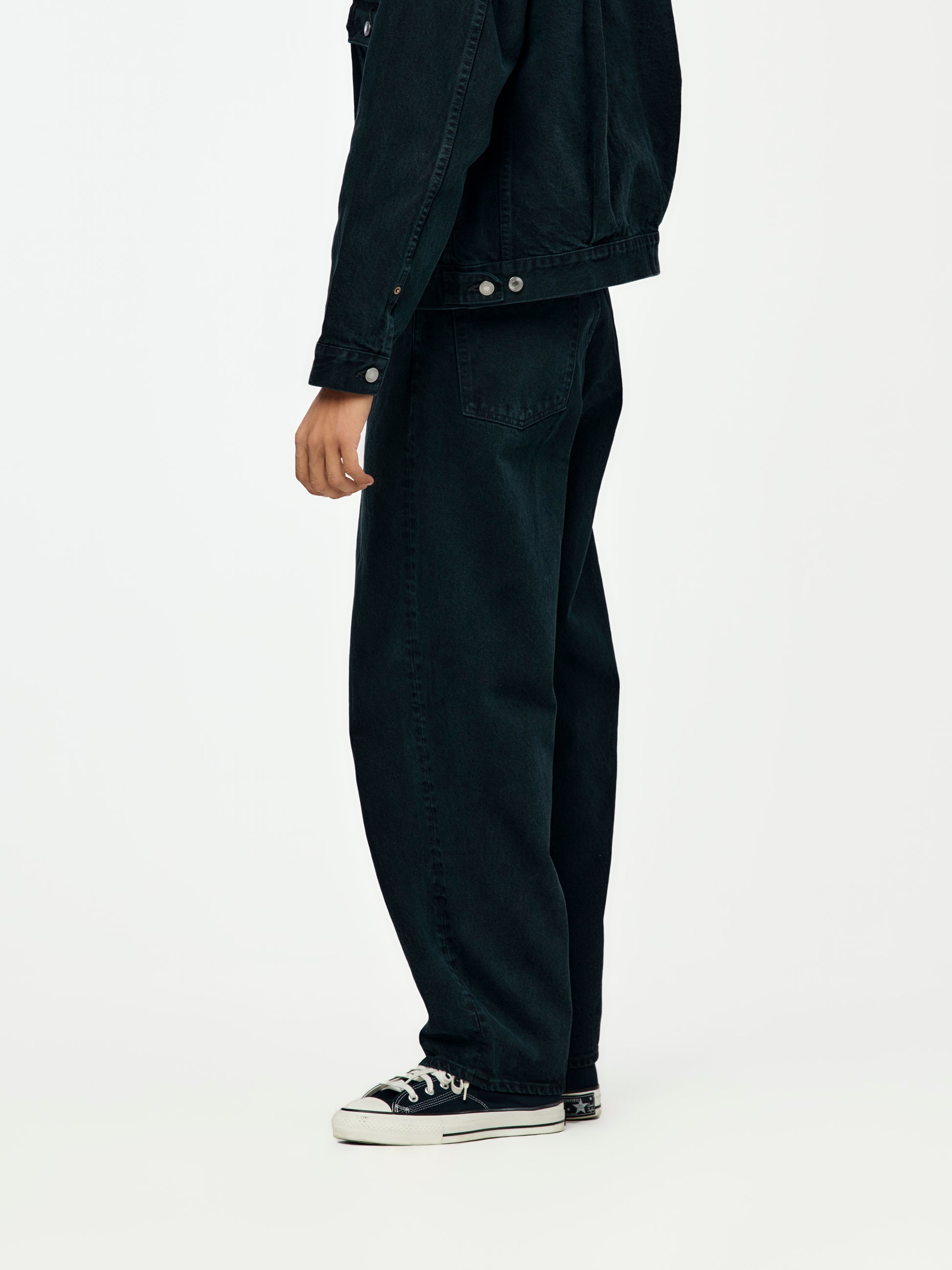 A.PRESSE delivers a modern classic with the Black Washed Wide Denim Pants. Cut with a relaxed wide leg, the denim is washed down for a lived-in black finish that channels vintage character without losing refinement. Subtle distressing and soft fades give depth to the silhouette, while thoughtful construction keeps it clean and versatile. A quiet staple that leans on Japanese craftsmanship and timeless wearability. Perfect with everything from crisp shirting to worn-in tees.