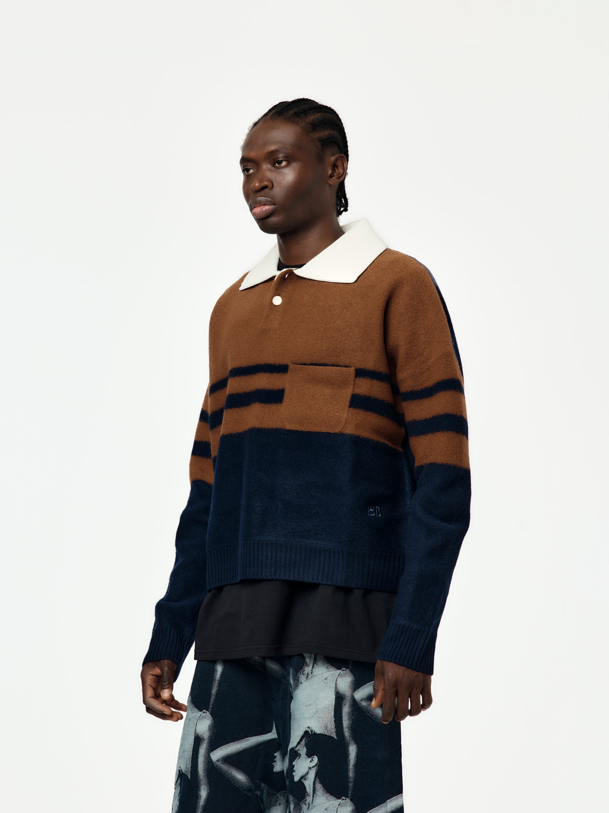 A knit short sleeve polo rendered in a fine wool blend with tonal ribbing. The fit is gentle and drapey, while the muted brown hue keeps it grounded. Preppy, contemplative, and quietly regal.