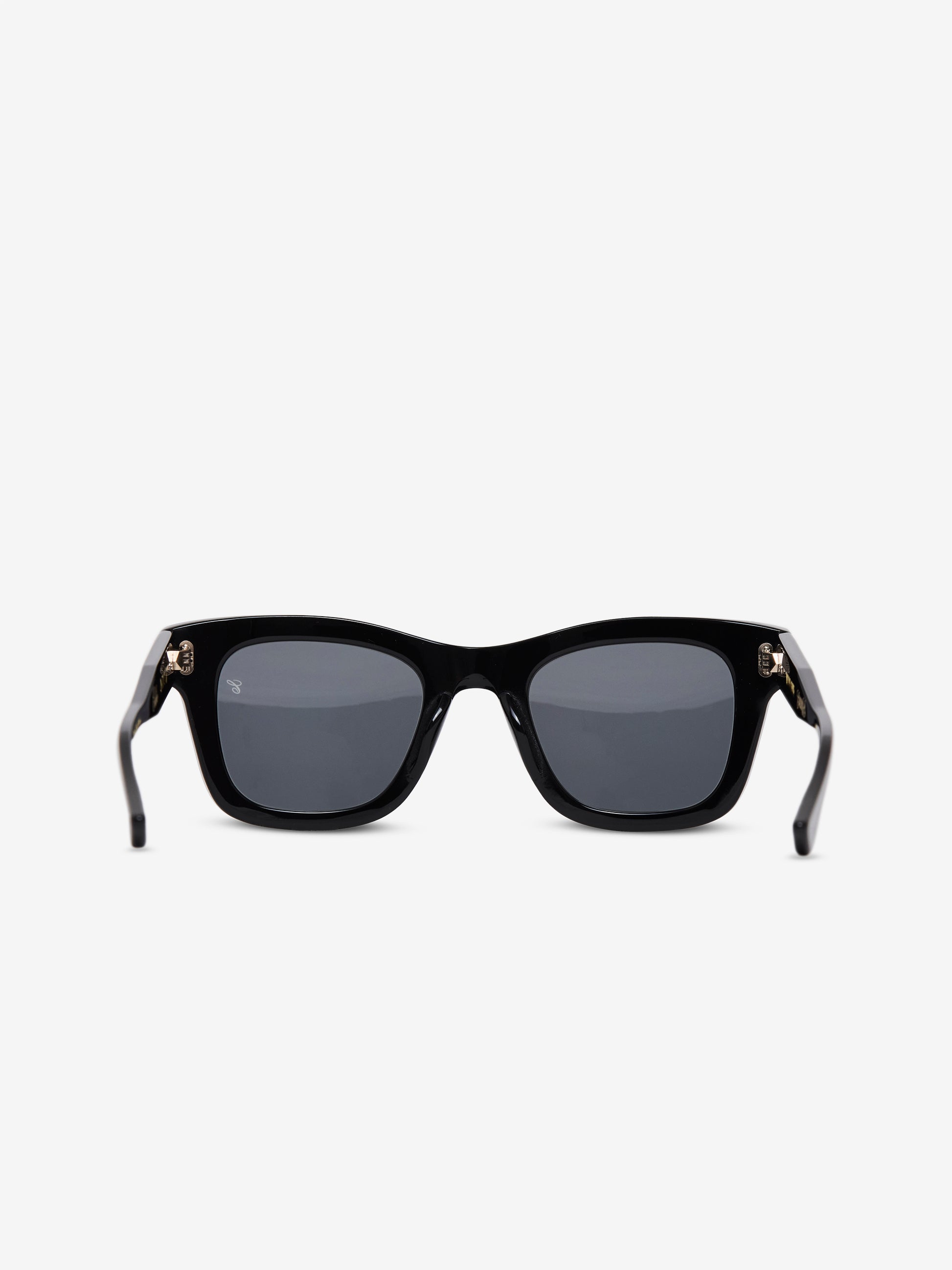 The Eddie marks a first for Native Sons — featuring exposed 16K gold core wire set against the striking Black acetate finish. The Casinola logo is etched on the upper left lens and inscribed on the left temple in gold.