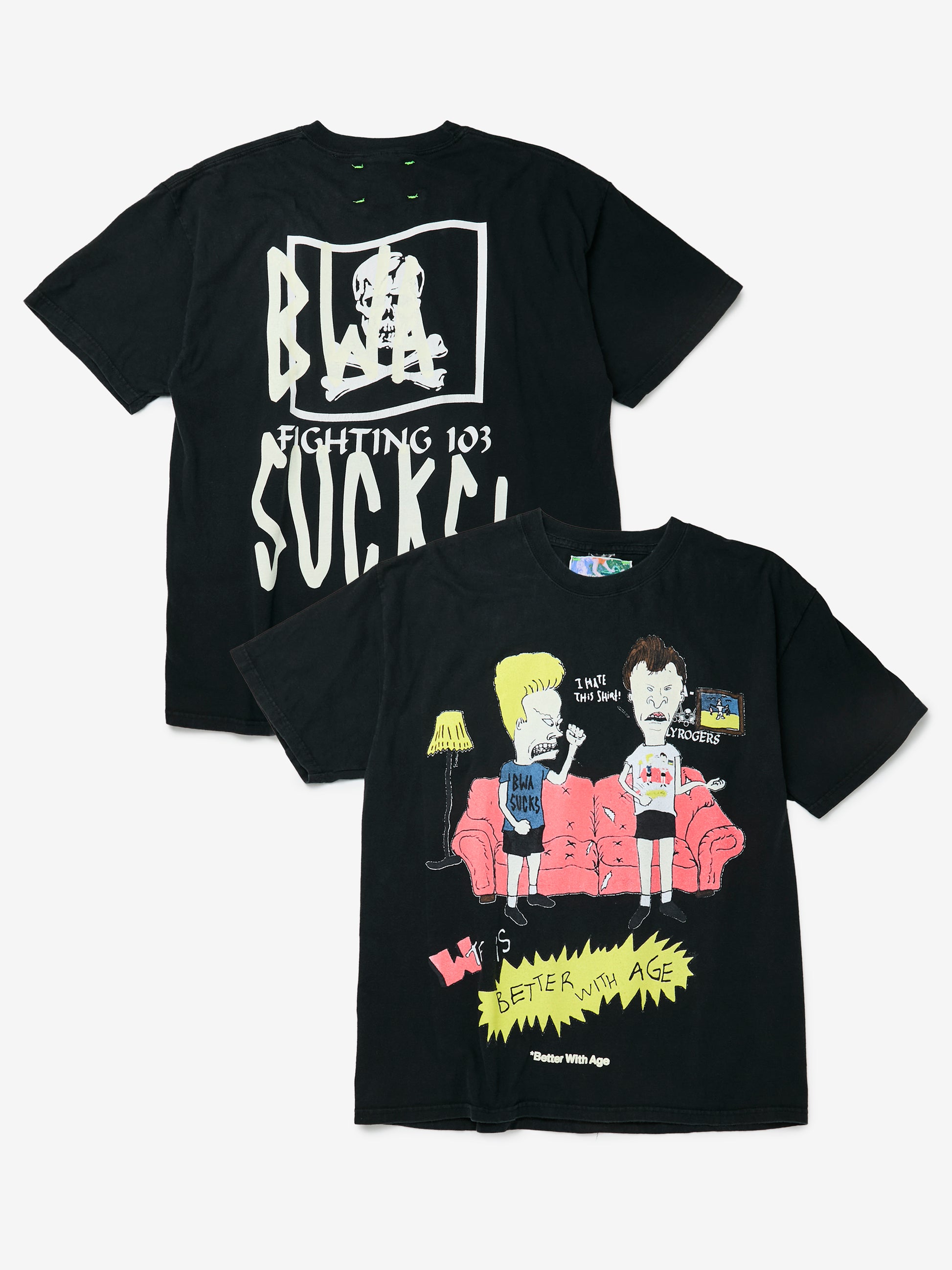 Presented on randomly assorted vintage garments — no two are alike. Base color and details will vary, making every item a true one-of-one.