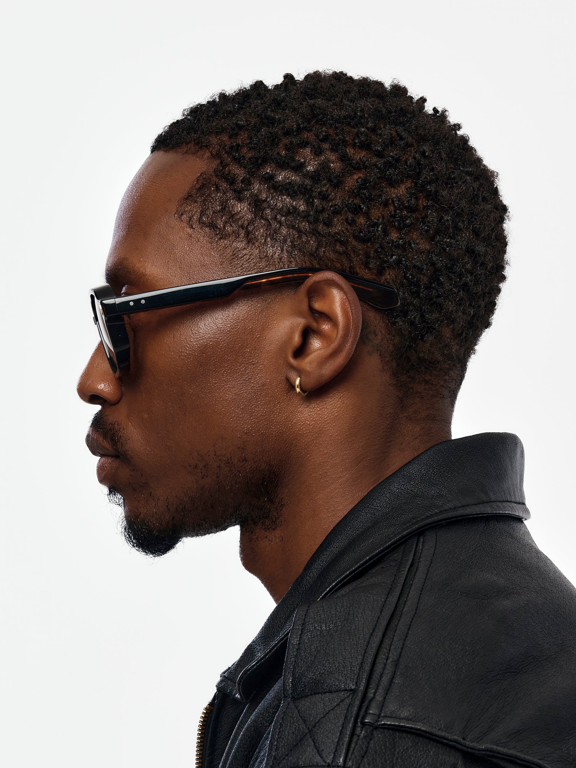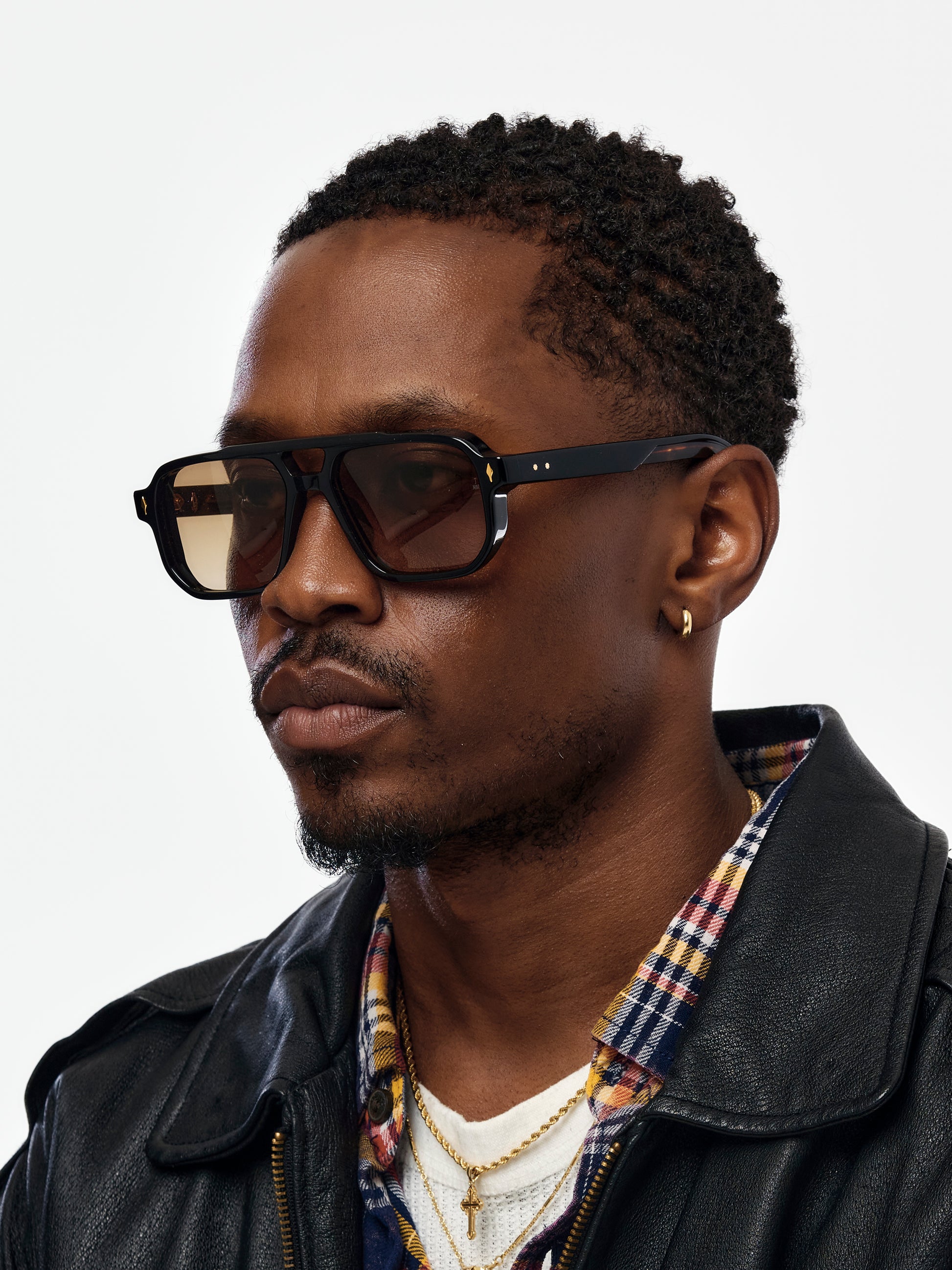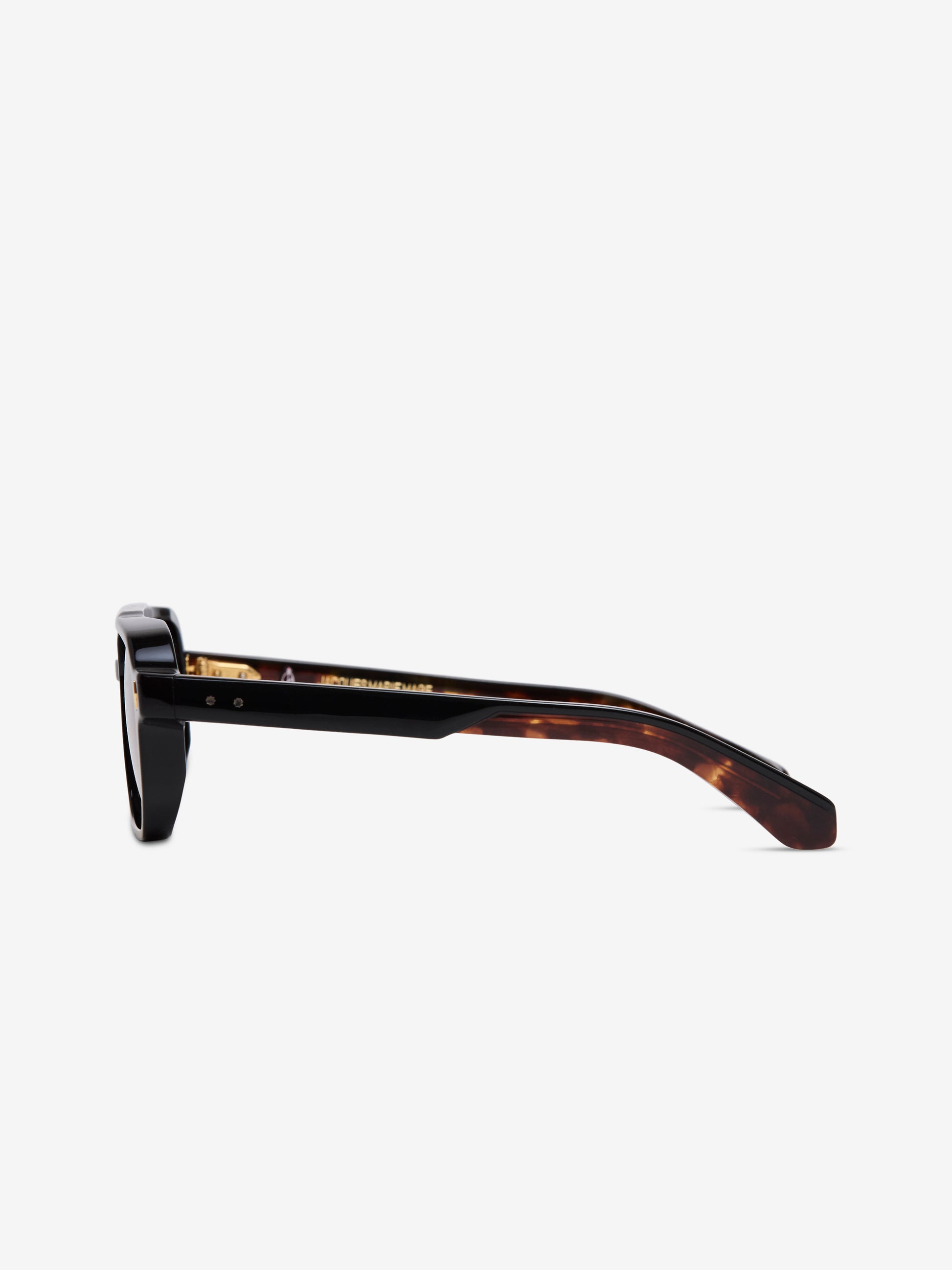The Jacques Marie Mage EVANS delivers a bold, sculptural silhouette rooted in mid-century modernism. Crafted in deep Noir acetate, the frame is paired with brass gradient CR39 lenses and dark gold hardware for a refined yet commanding presence. Thick temples, precise beveling, and JMM’s signature metal details elevate the design. A statement frame built with artisanal precision—luxury eyewear with timeless authority.