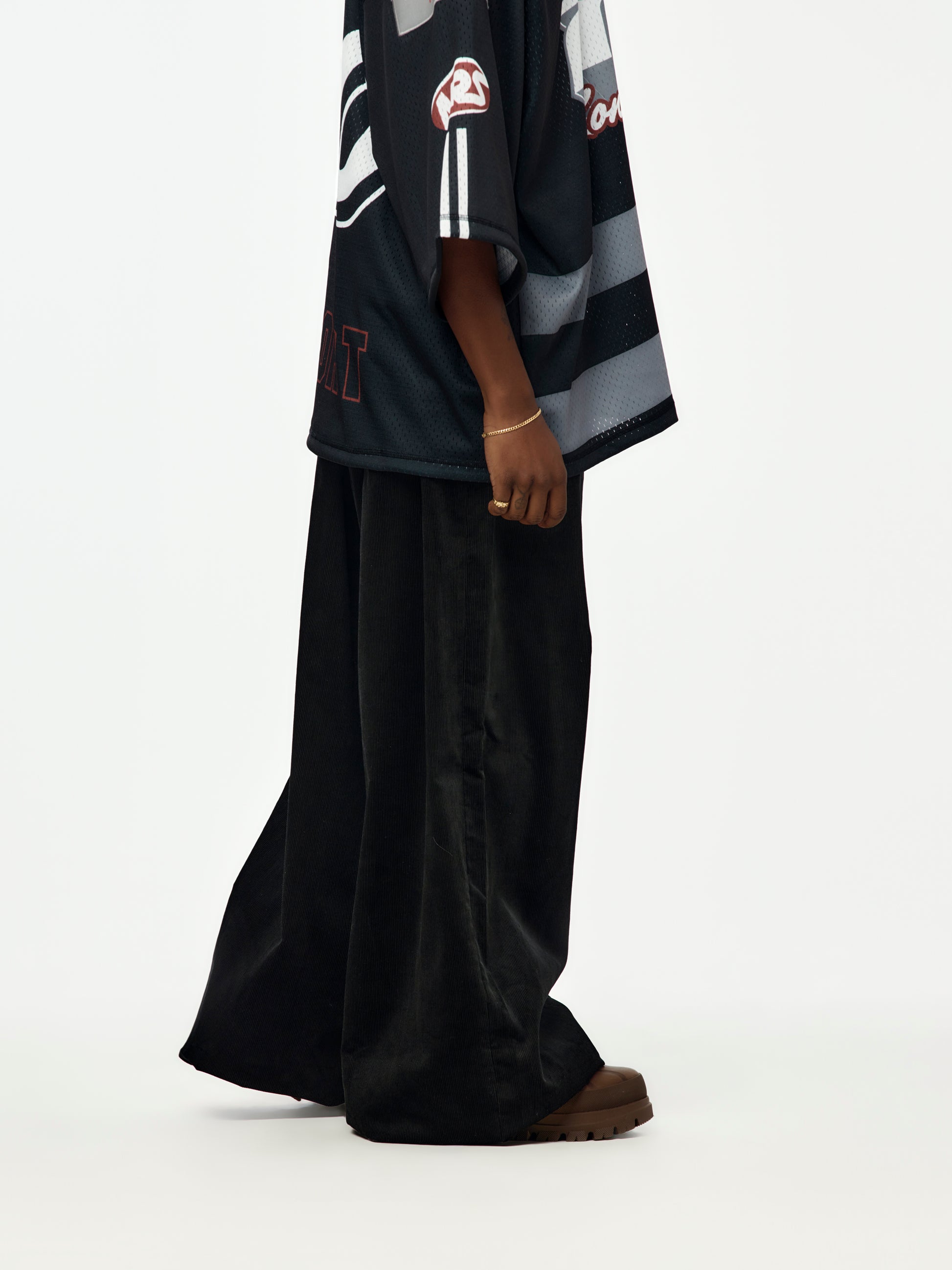Martine Rose’s tailoring at its most experimental. The Extreme Wide Leg Trouser exaggerates volume with a dramatic silhouette that pools and moves with graphic precision. Cut in clean Black suiting fabric, it lands somewhere between classic formalwear and avant-garde street style. Sharp pleats, a structured waistband, and a fluid drape make it one of her signature shapes — confident, unconventional, and surprisingly wearable.