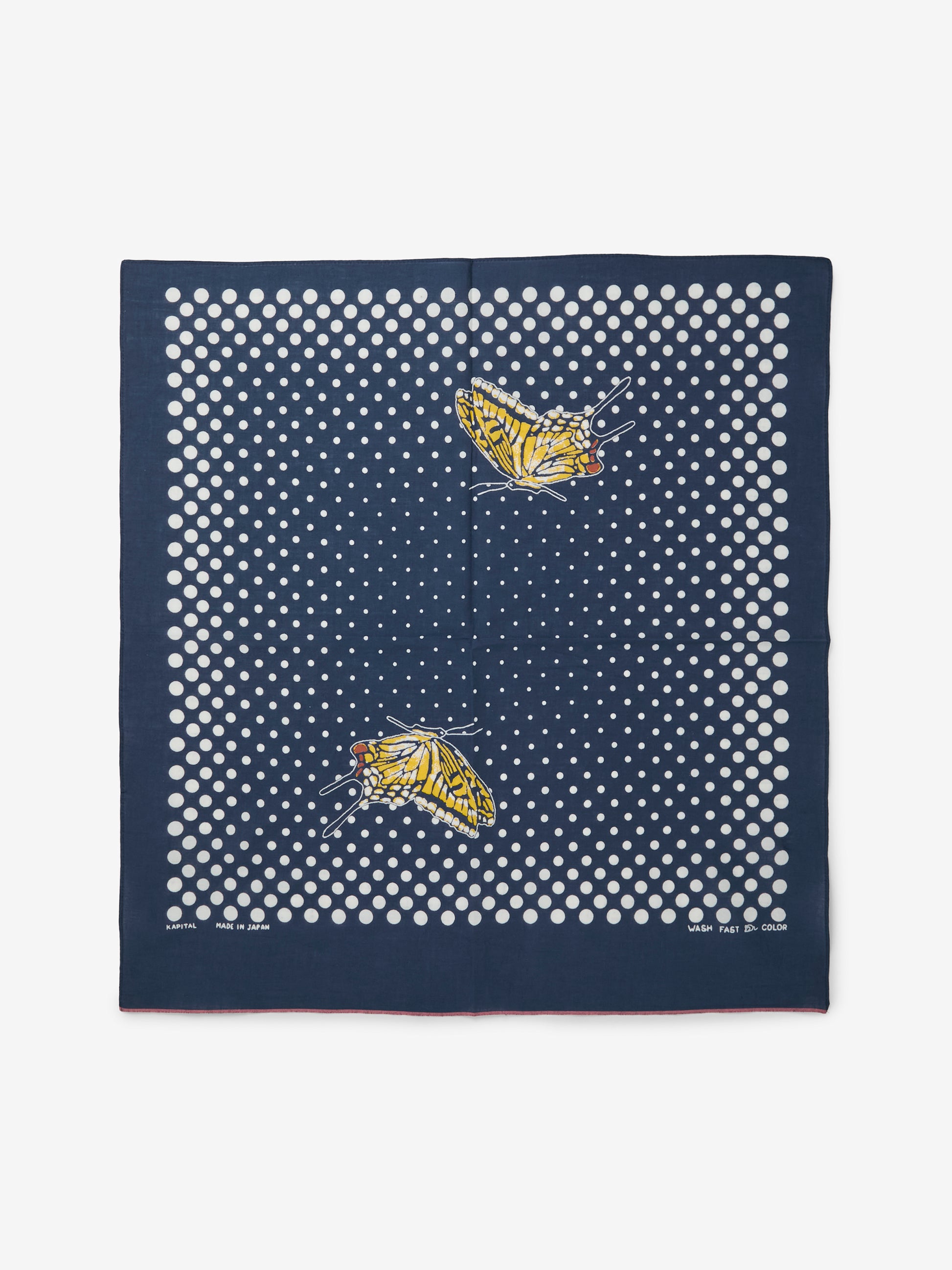 Classic polka dots with a twist. Kapital’s Fastcolor Bandana returns, this time featuring a pair of Coco Swallowtail butterflies fluttering across a selvedge cotton canvas. Wear it, hang it, pocket it—whatever your move, it adds just the right amount of detail.
