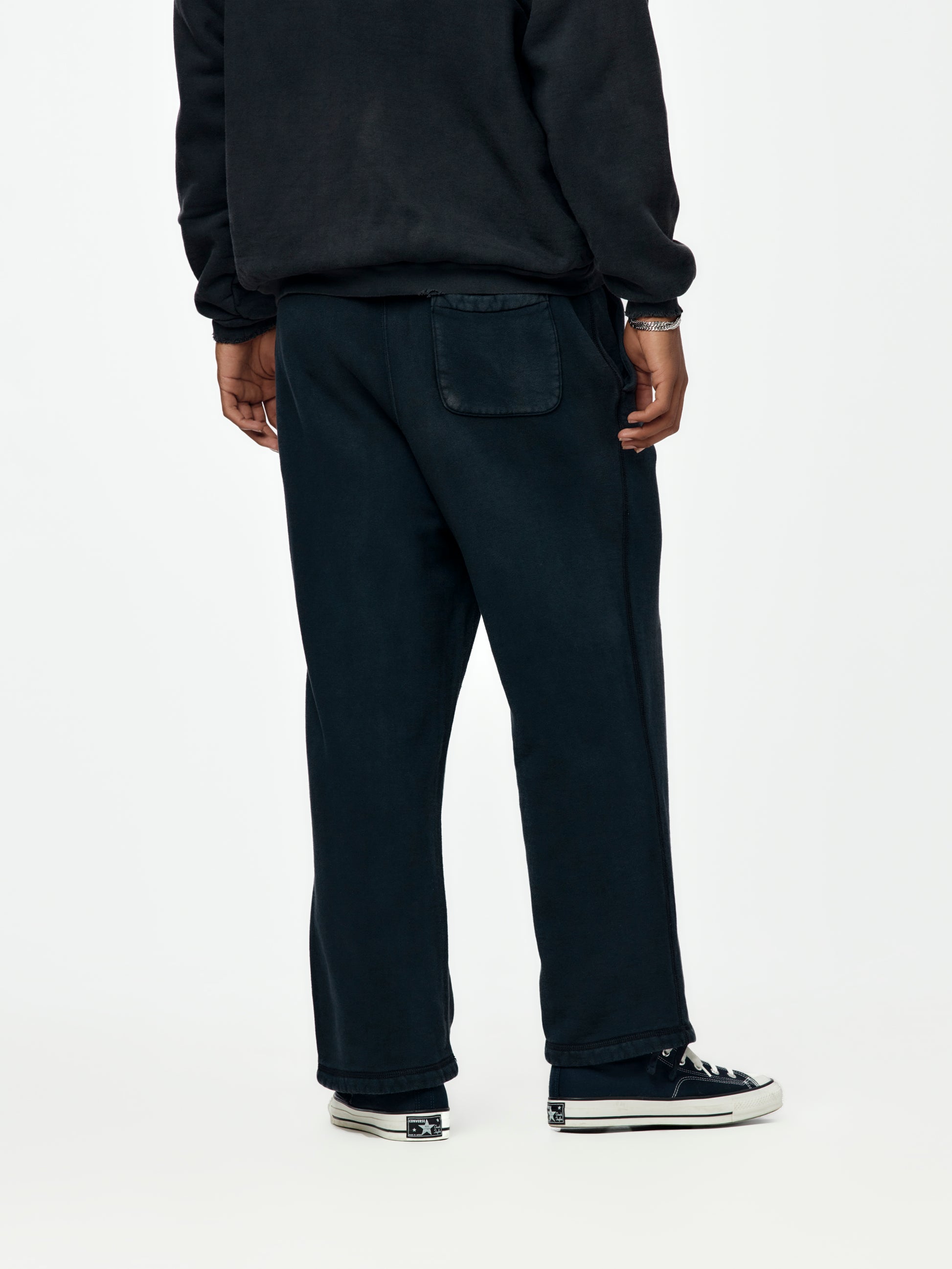 A.PRESSE refines the off-duty staple with their Vintage Sweatpants in Black. Made from heavyweight cotton fleece, brushed for a dry, broken-in feel, these sweats sit relaxed through the leg with a slightly tapered finish. Ribbed cuffs, tonal drawcords, and meticulous garment dyeing complete the look. Minimal on the surface, premium in every stitch — quiet luxury in motion.