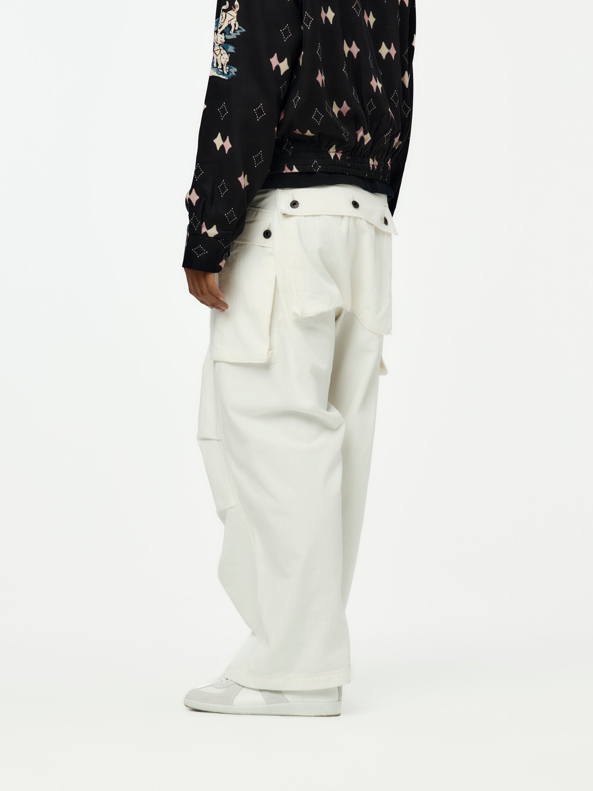 A signature KAPITAL silhouette, the JUMBO MONKEY Pants blend utility, volume, and vintage influence. Constructed from durable herringbone fabric, the exaggerated cut delivers comfort with attitude, while thoughtful pocketing and stitch work reflect KAPITAL’s obsession with craft. Designed to break in beautifully over time, these pants balance workwear roots with experimental Japanese design—built for movement, layering, and everyday rotation.