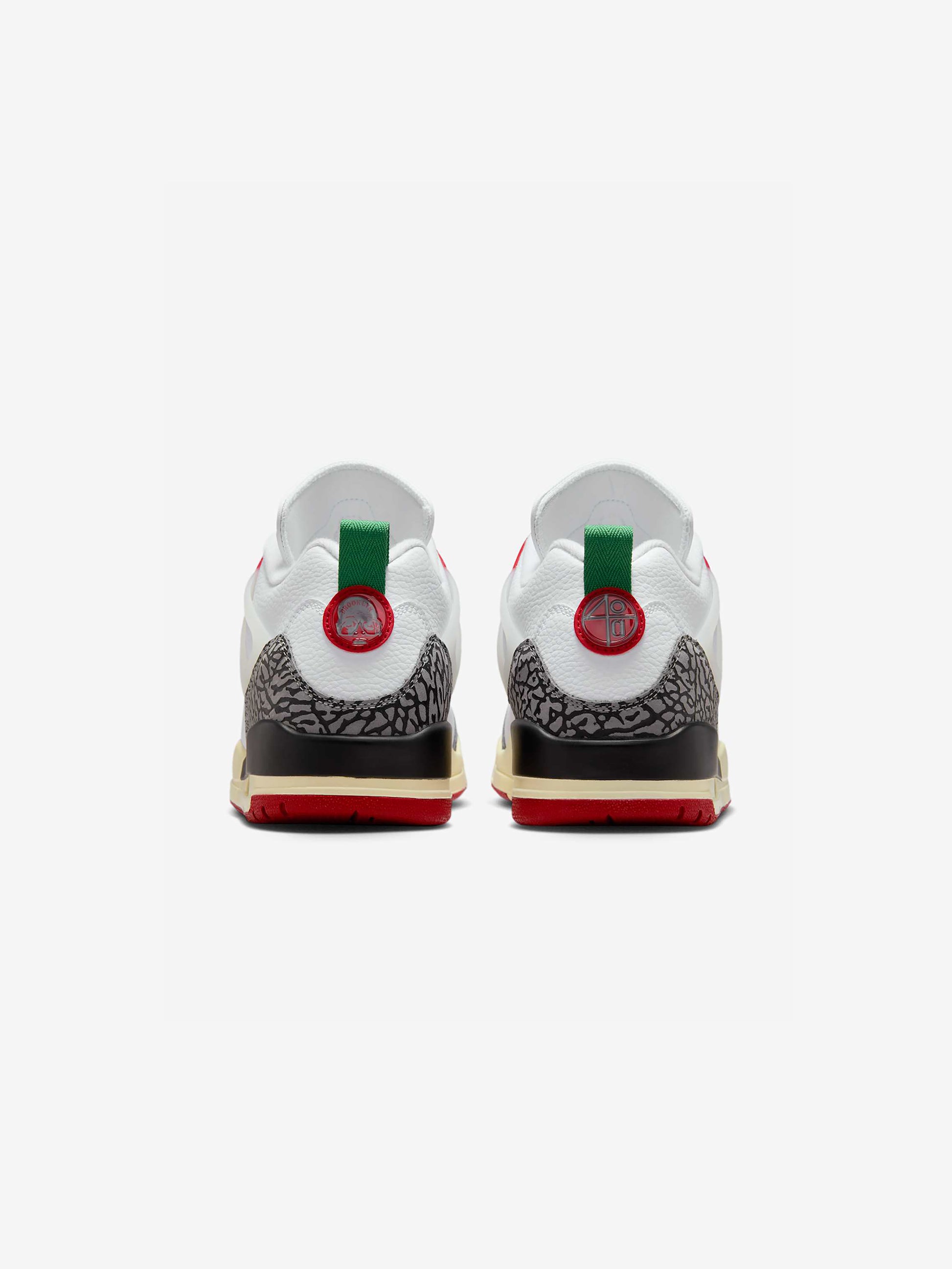 The Jordan Spizike Low SE "Do The Right Thing" pays tribute to Spike Lee’s iconic film and his long-standing connection to Jordan Brand. A crisp white leather upper sets the stage for vibrant accents of red, green, and gold — a nod to the movie’s cultural impact and Brooklyn roots. Classic Spizike details like elephant print overlays and visible Air cushioning keep it true to its hybrid legacy. Equal parts nostalgia and street statement, this pair bridges heritage and heat, embodying the energy that made Jordan and Lee icons in their own right.