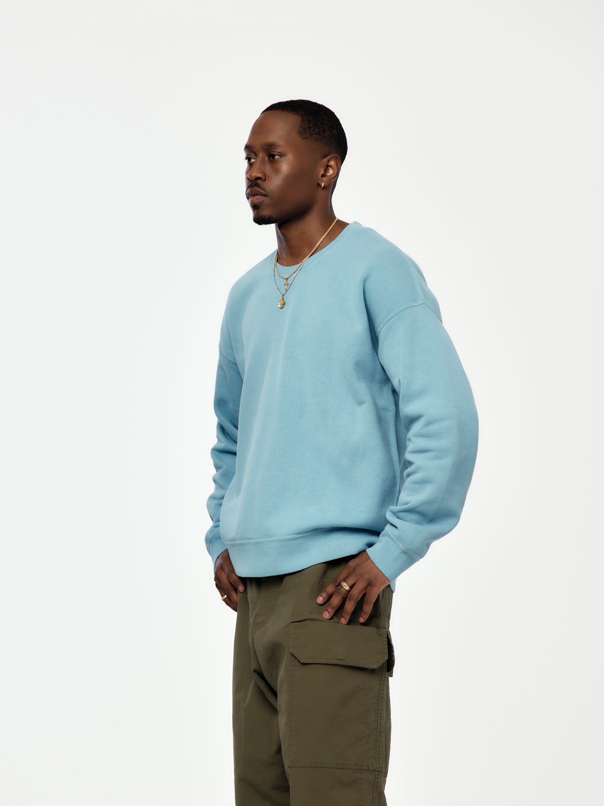 Visvim’s Jumbo SB Sweat L/S combines oversized comfort with expert craftsmanship. Distressed details give a lived-in look, while premium cotton ensures durability and softness. The Lt. Blue and Green washes fade naturally over time, creating a unique aesthetic for each wearer. Its relaxed silhouette and dropped shoulders capture that effortless street-luxe appeal, making it ideal for layering or standing out solo. A definitive piece for those who value timeless design with a modern edge.
