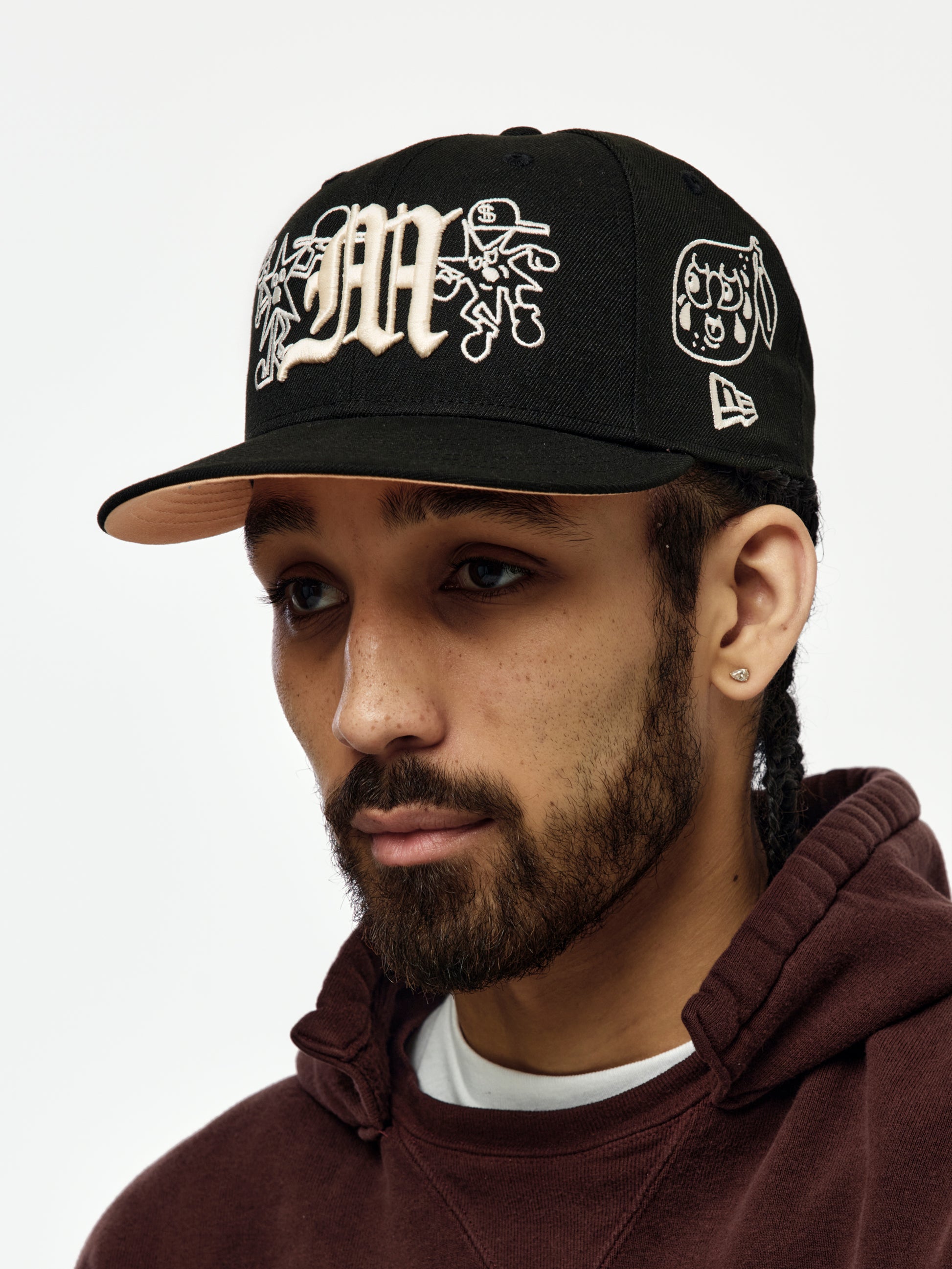 The Mora x New Era 59FIFTY fitted cap delivers a classic New Era silhouette infused with the artist’s cultural identity. Featuring a structured crown, flat brim, and custom Mora embroidery, the Black colorway offers a clean, versatile finish. Built on the iconic 59FIFTY platform, this collaborative cap blends music, streetwear, and timeless headwear design.