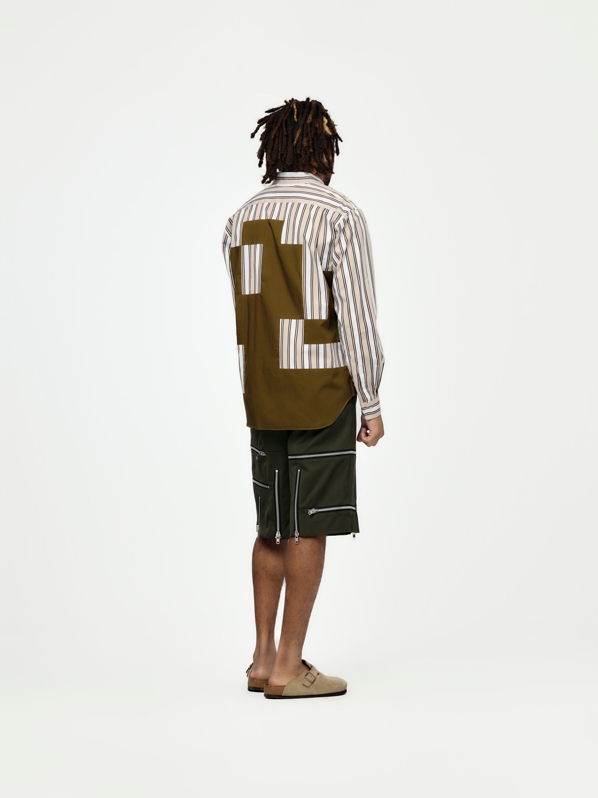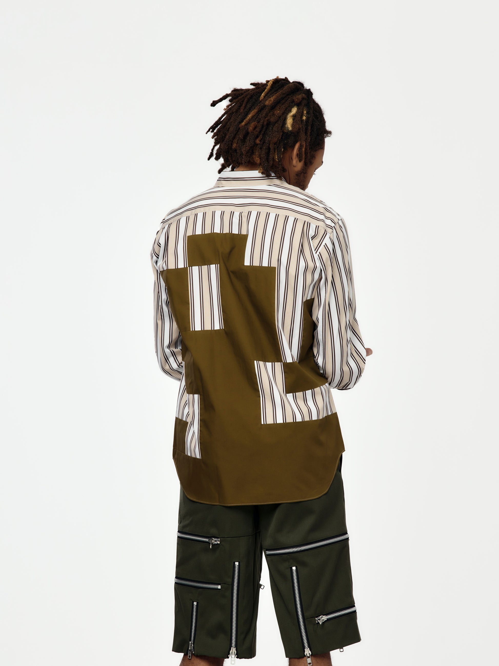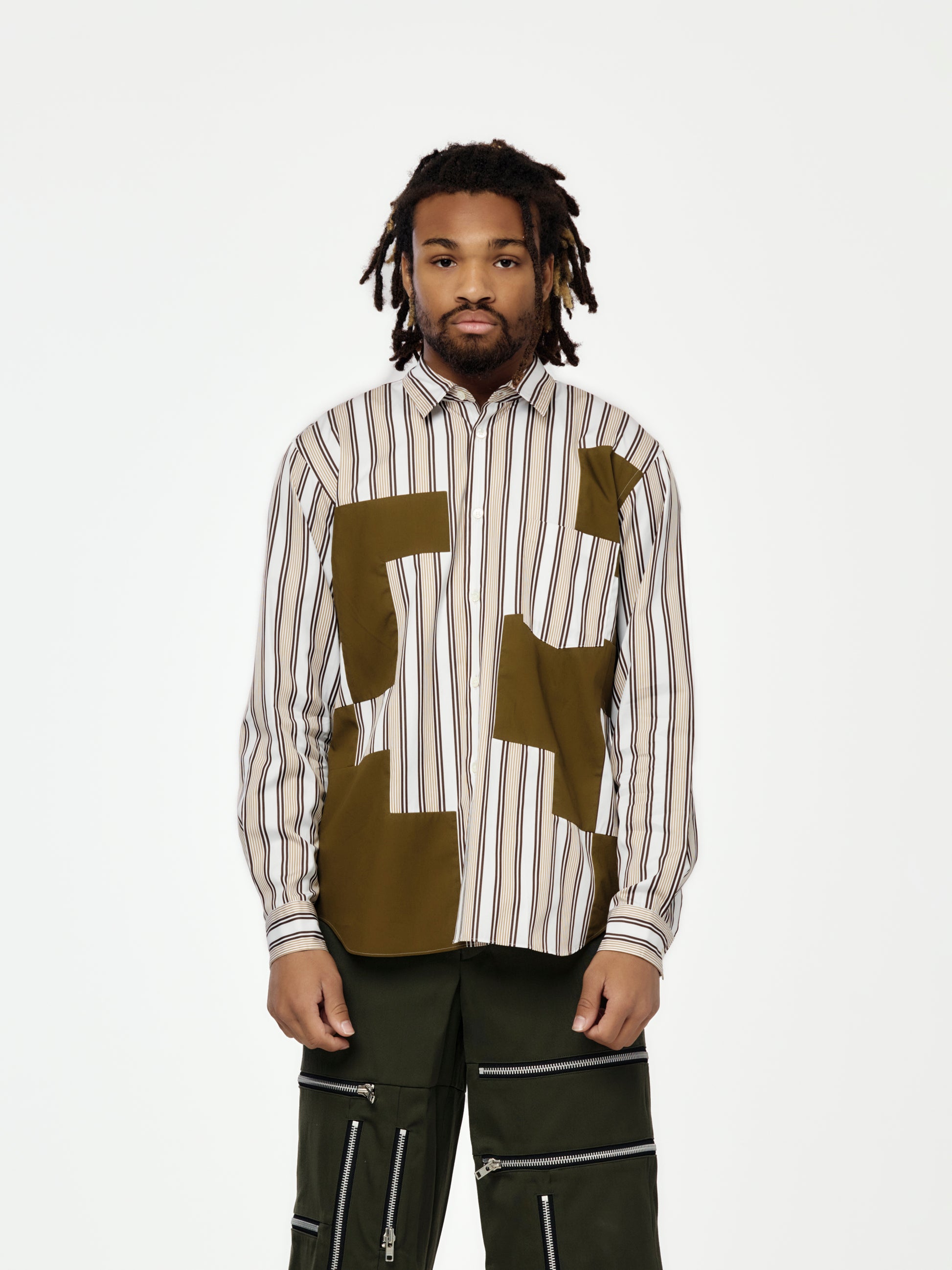 Pattern and precision collide. This button-up shirt reworks classic shirting with a CDG lens, combining white, brown, and khaki tones into an unexpected palette. Sharp yet offbeat, it’s a standout piece for pushing everyday style forward.