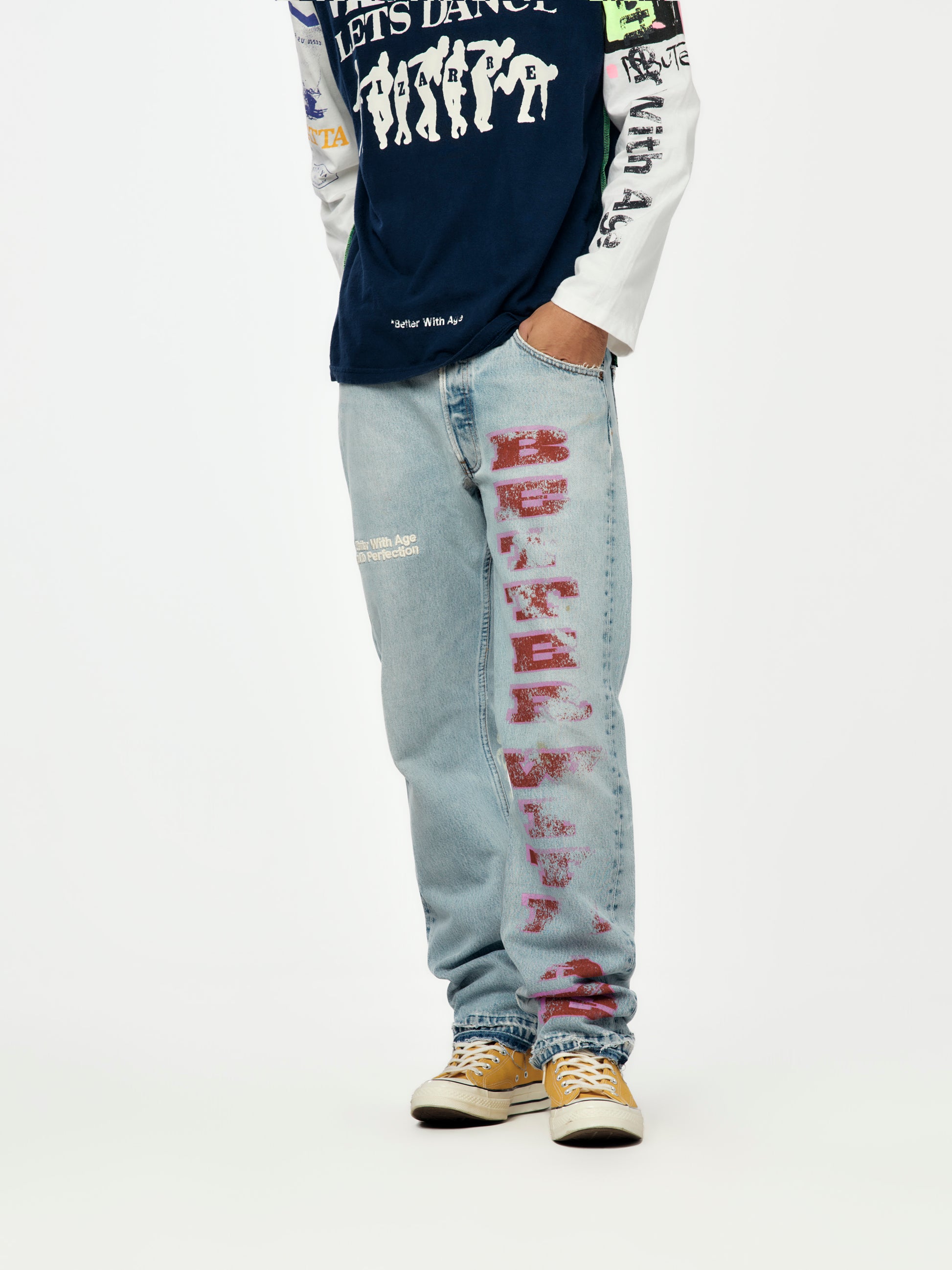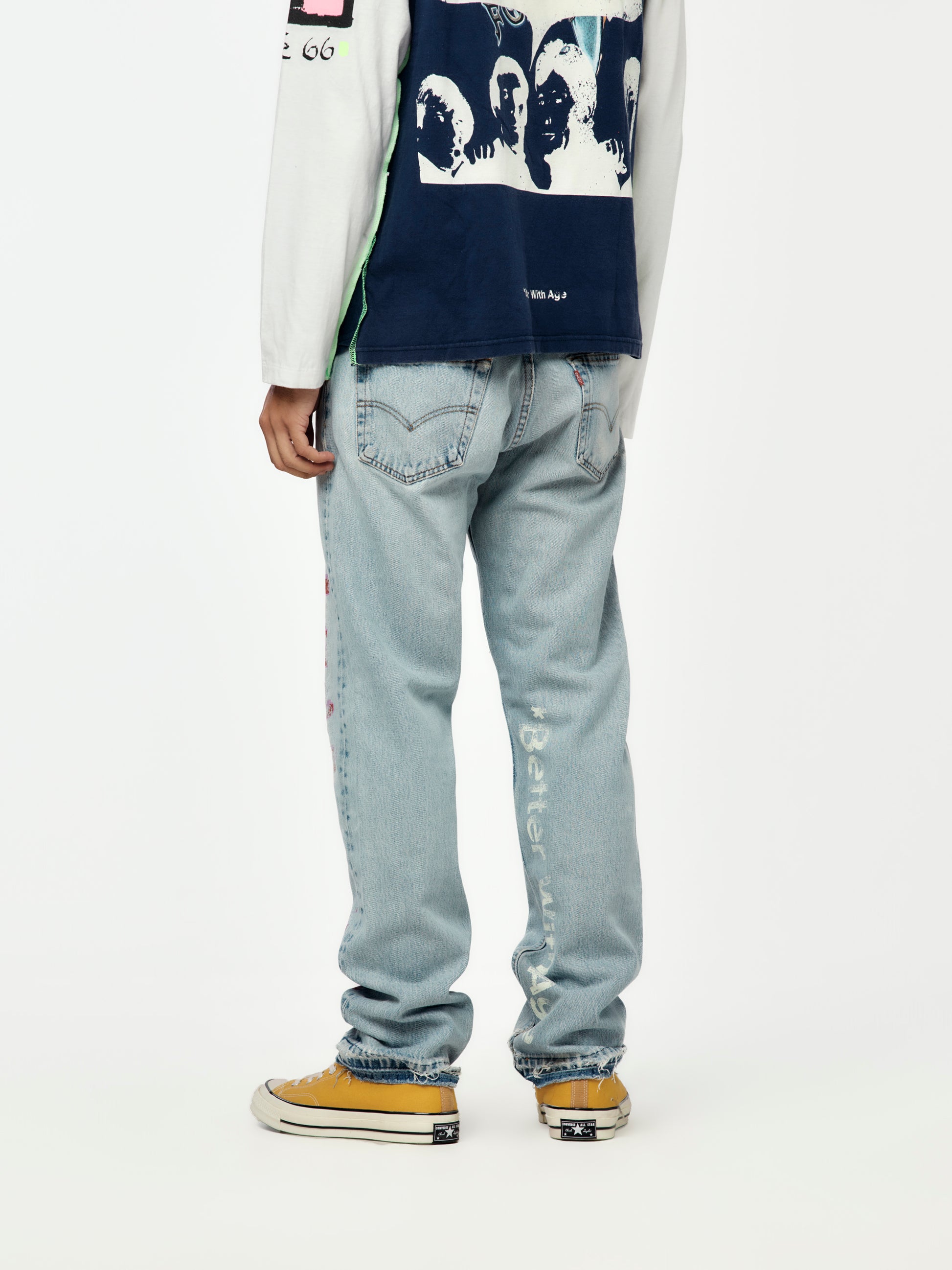 Presented on randomly assorted vintage garments — no two are alike. Base color and details will vary, making every item a true one-of-one.
