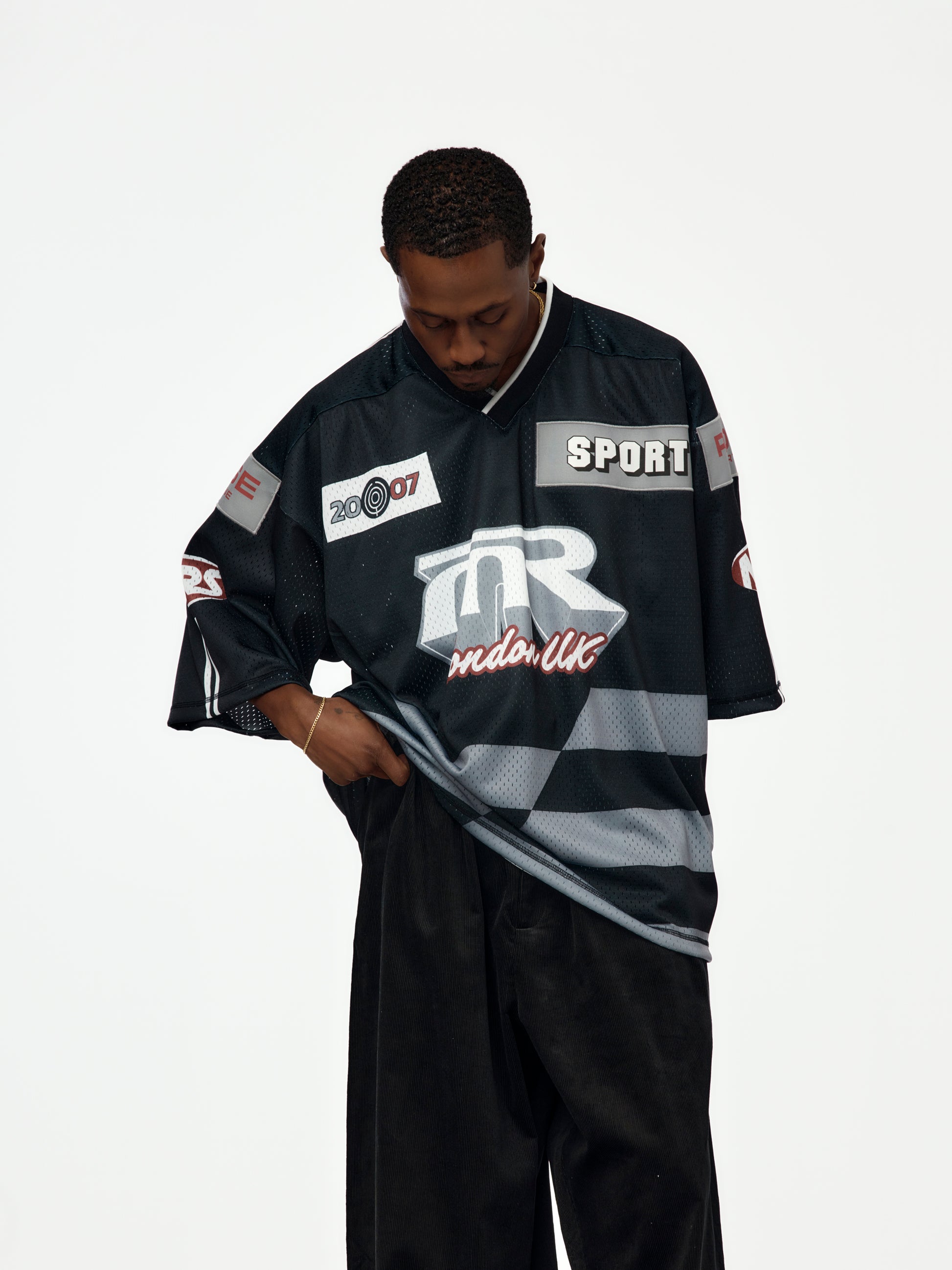 Rooted in sport, rewritten by Martine Rose. This Black & Grey Oversized Hockey Top leans into contrast paneling and bold striping, finished with her trademark oversized proportions. Lightweight, structured, and designed to sit off the body, it channels 90s pitch energy through a distinctly London lens. An instant statement piece for everyday wear.