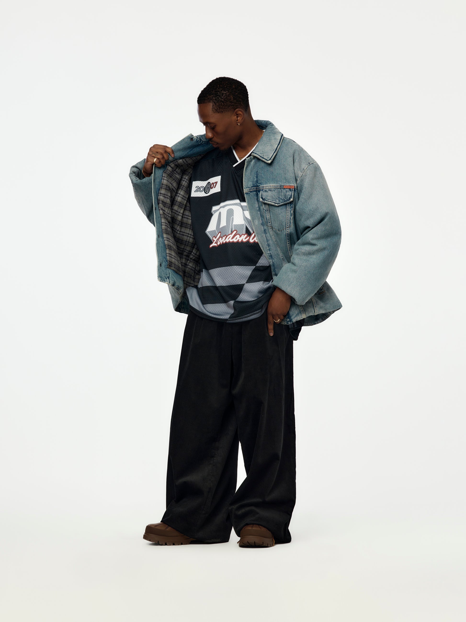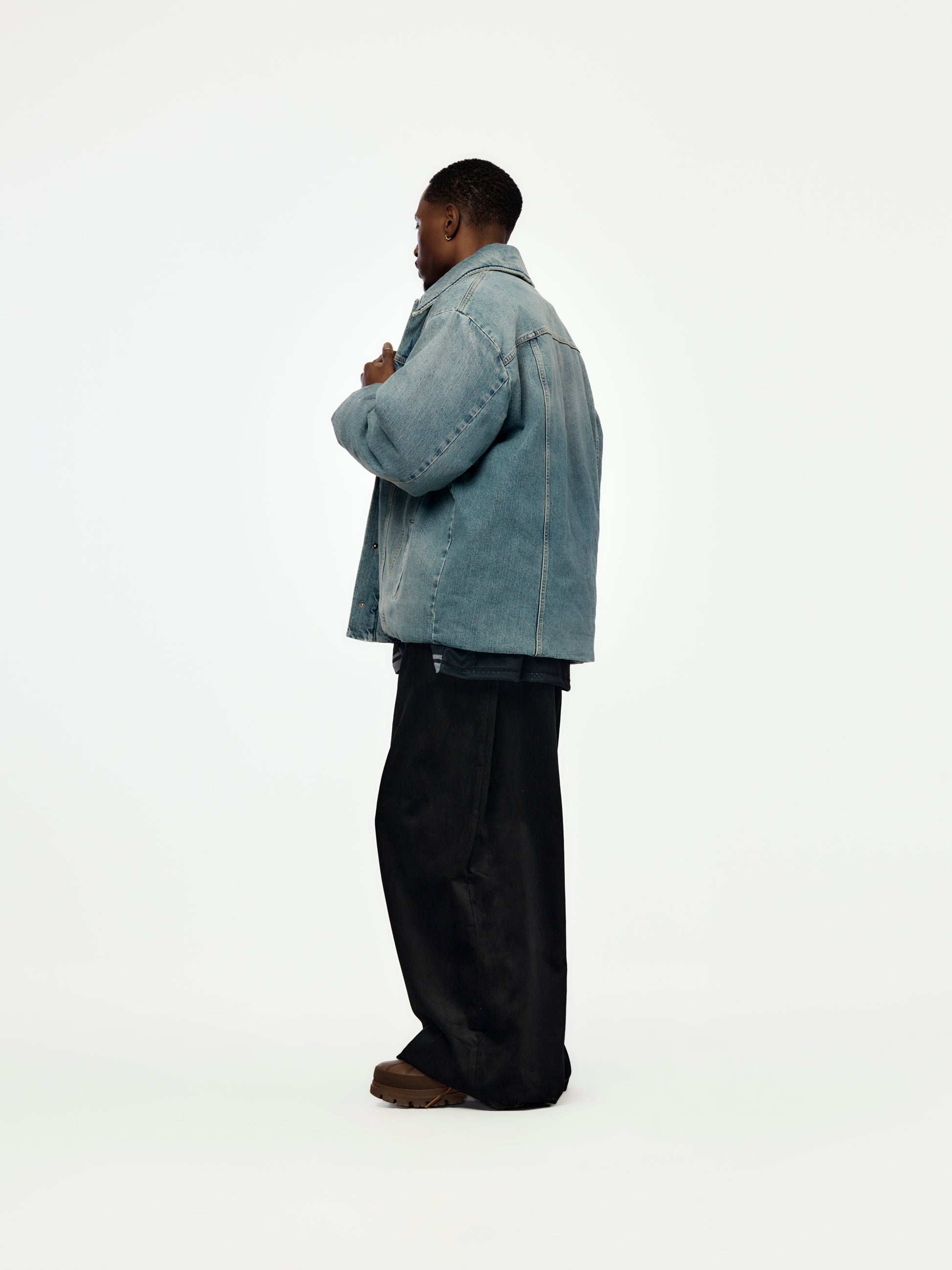 A classic denim trucker turned inside out and re-engineered. The Padded Denim Jacket in Blue features a boxy cut with subtle insulation, creating a sculpted shape that holds form without feeling heavy. Washed indigo denim, sharp seaming, and exaggerated proportions make it unmistakably Martine Rose — familiar elements twisted just enough to feel new. A modern outerwear staple with runway DNA.