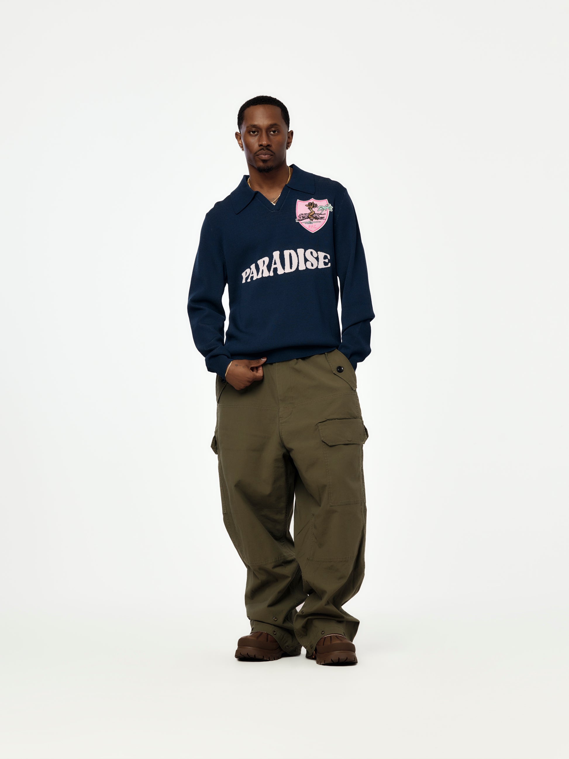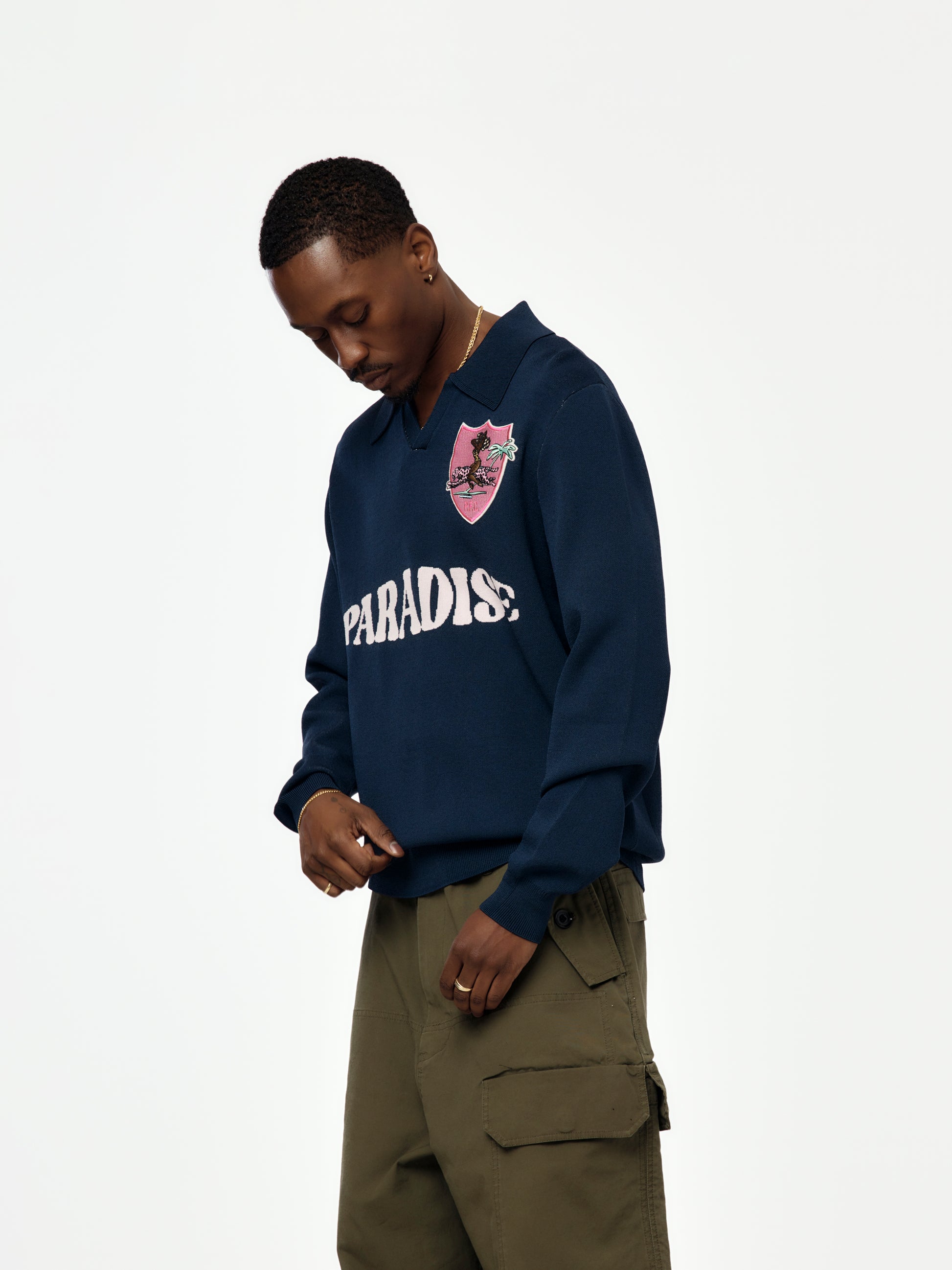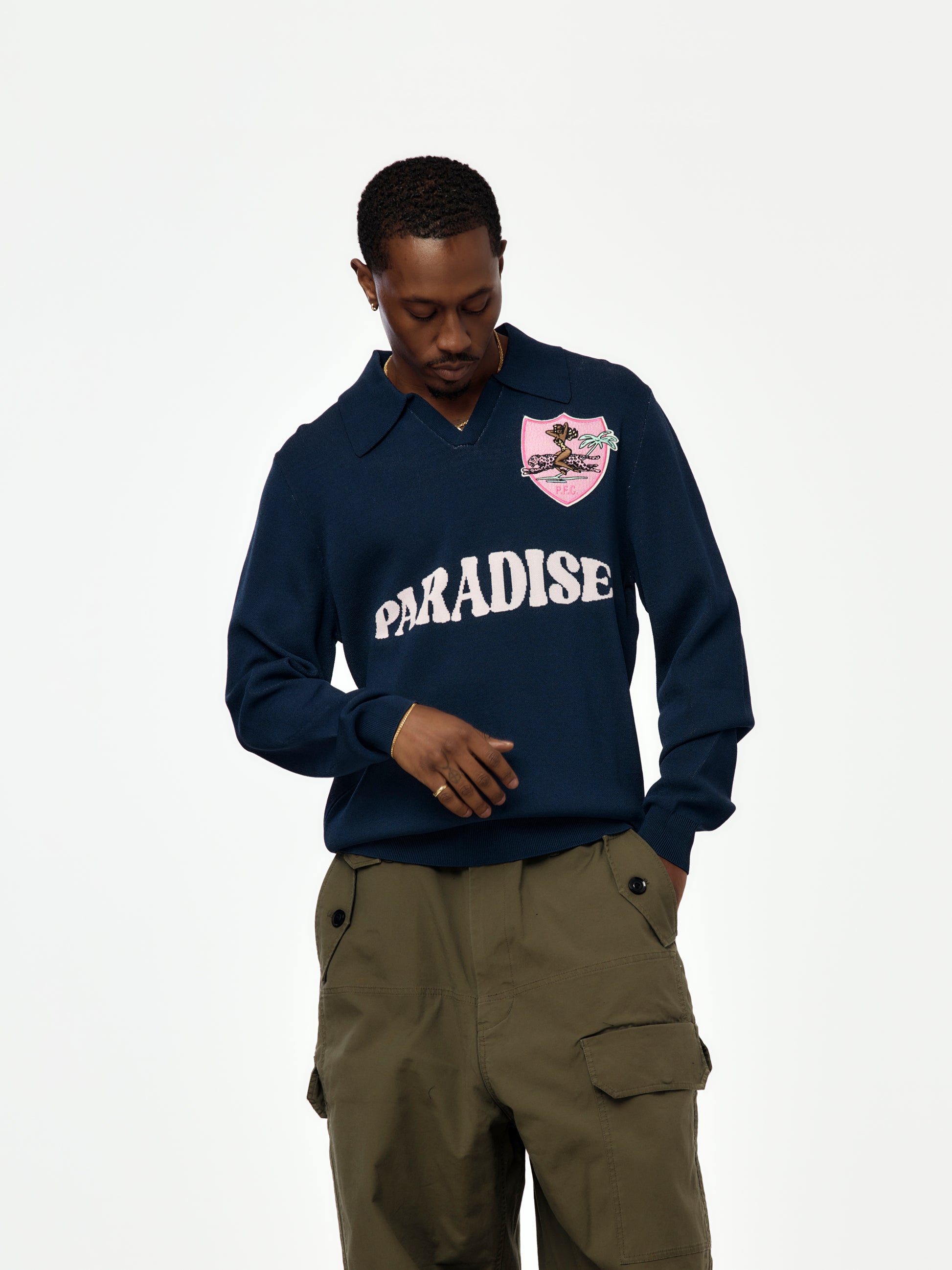 The “Away” jersey for Paradise FC—part myth, part lifestyle. Cut in deep sea blue, the piece uses soft fabric and subtle branding to feel like part of a story only certain people know. A statement jersey not just for the field, but for everyday rotation.