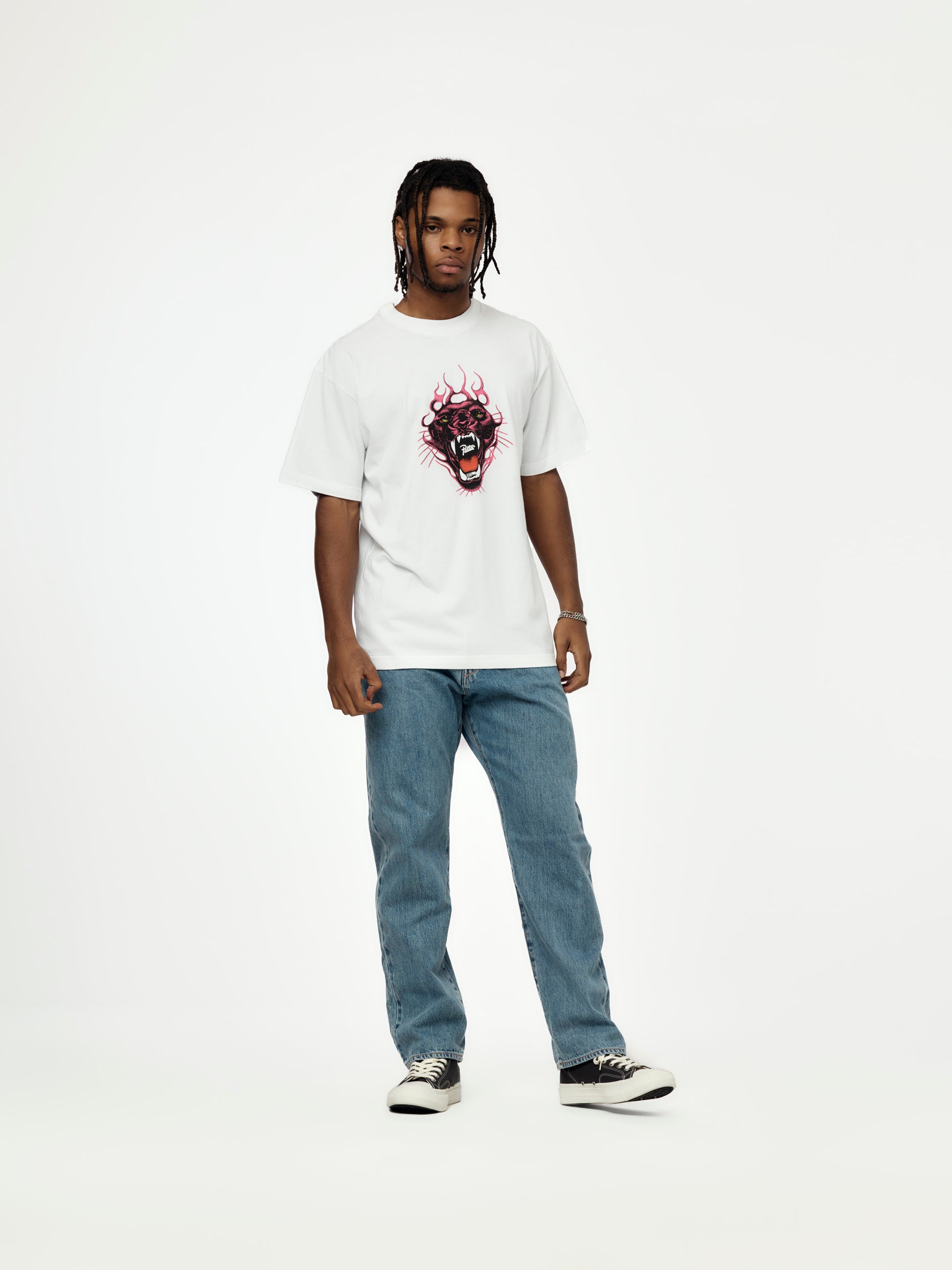 The Fire Panther T-Shirt brings energy and symbolism to a clean white base. Featuring bold graphic artwork, the tee reflects Patta’s roots in music, movement, and subculture. Cut from soft cotton with a relaxed fit, it’s a statement piece that still wears easy—graphic-heavy, never forced.