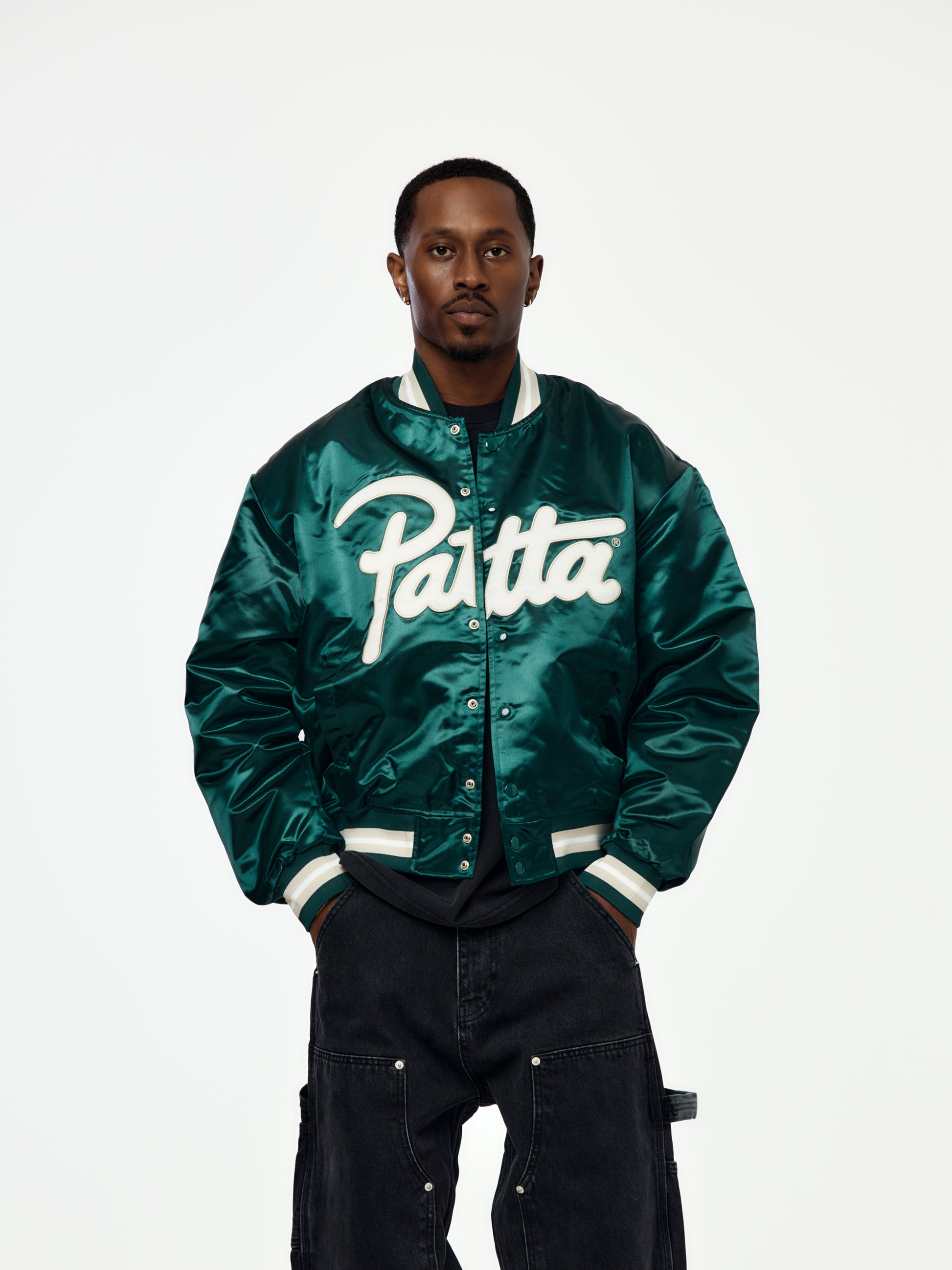 A varsity classic with a luxe twist. Made from water-resistant satin, this bomber-style jacket is filled with Primaloft Silver insulation for warmth, and features a bold Patta script logo across the chest.