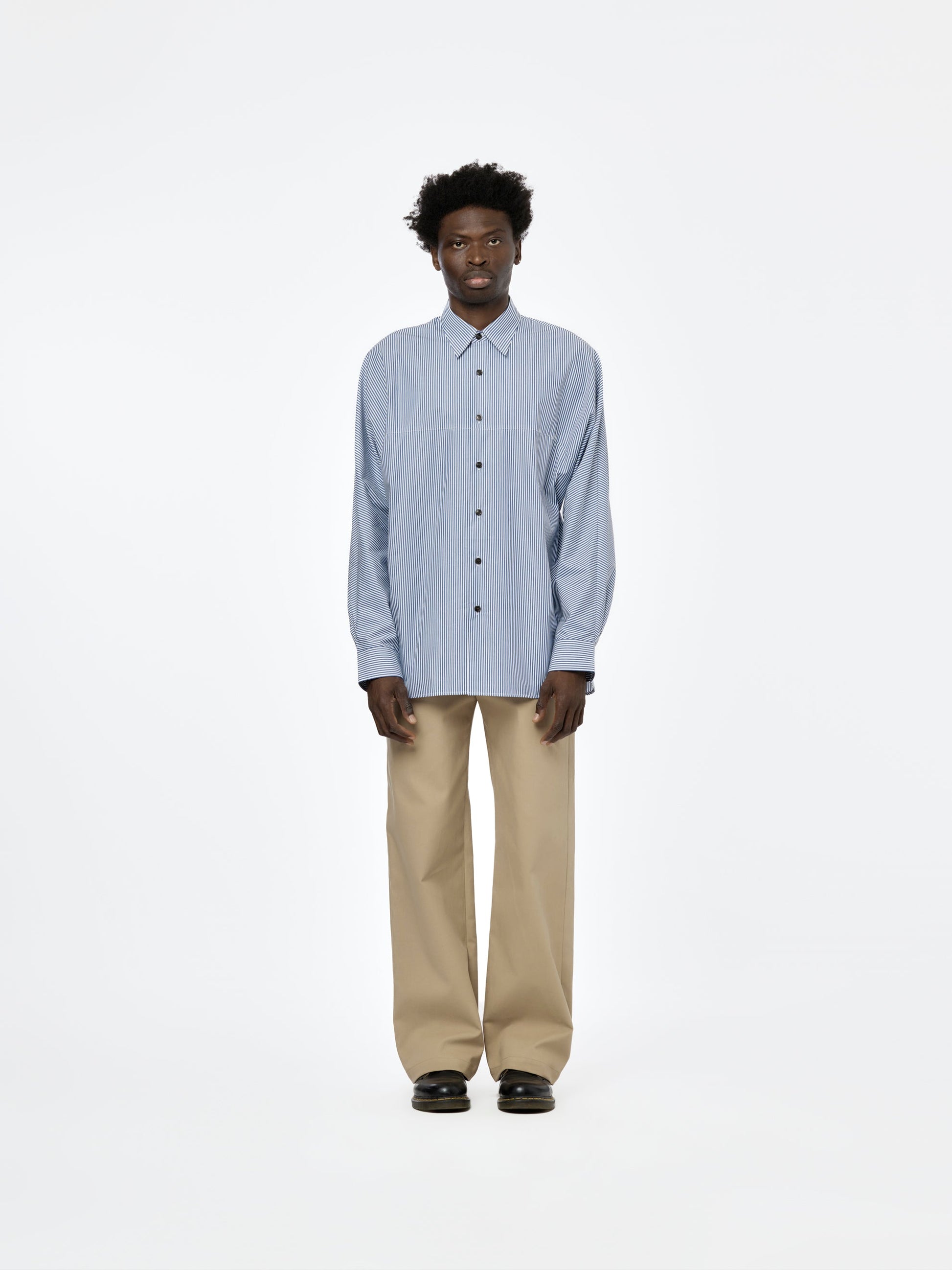 These wool twill trousers are a sophisticated addition to any wardrobe, offering both style and functionality. They feature a sleek pin-buckle belt at the belt loops, adding a refined touch to the design. With four-pocket styling, these trousers provide practicality while maintaining a streamlined look. The zip-fly closure ensures a secure fit, and the unlined construction allows for comfortable wear throughout the day. Ideal for both formal and casual occasions, these trousers embody timeless elegance.