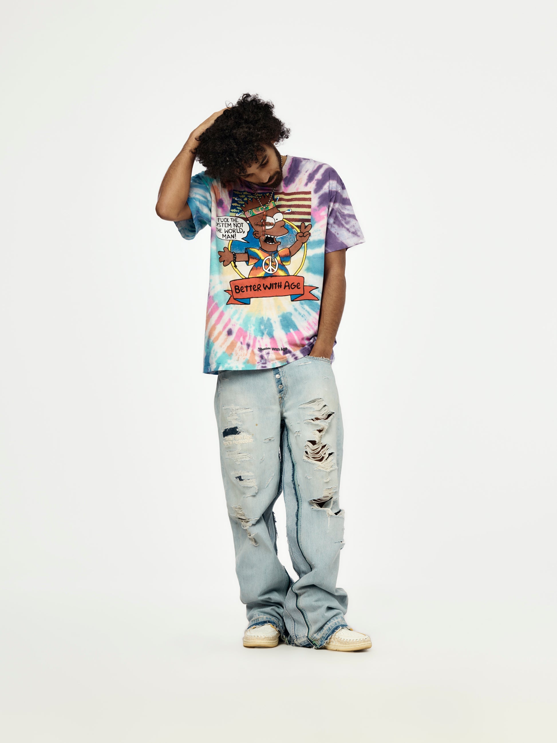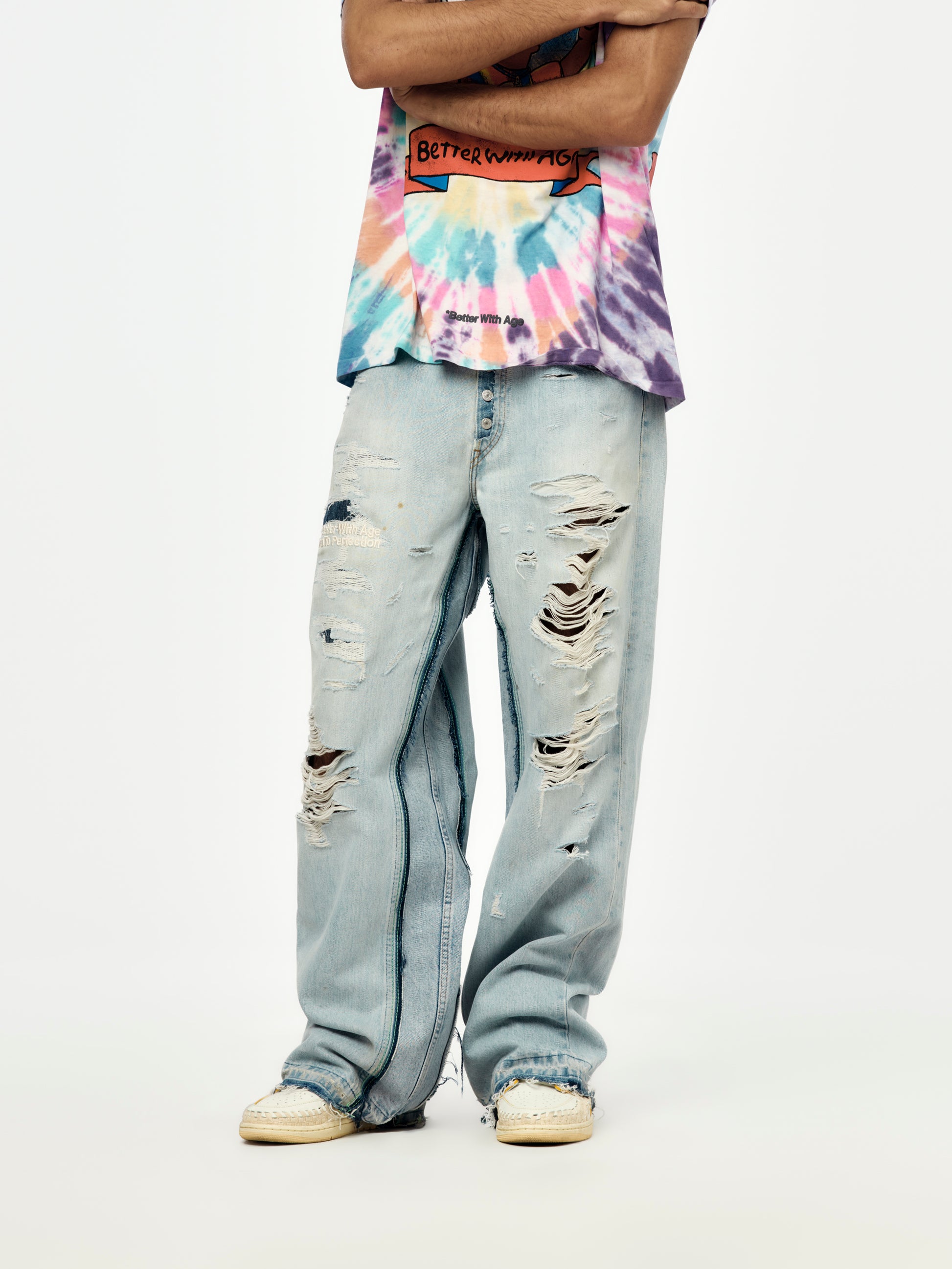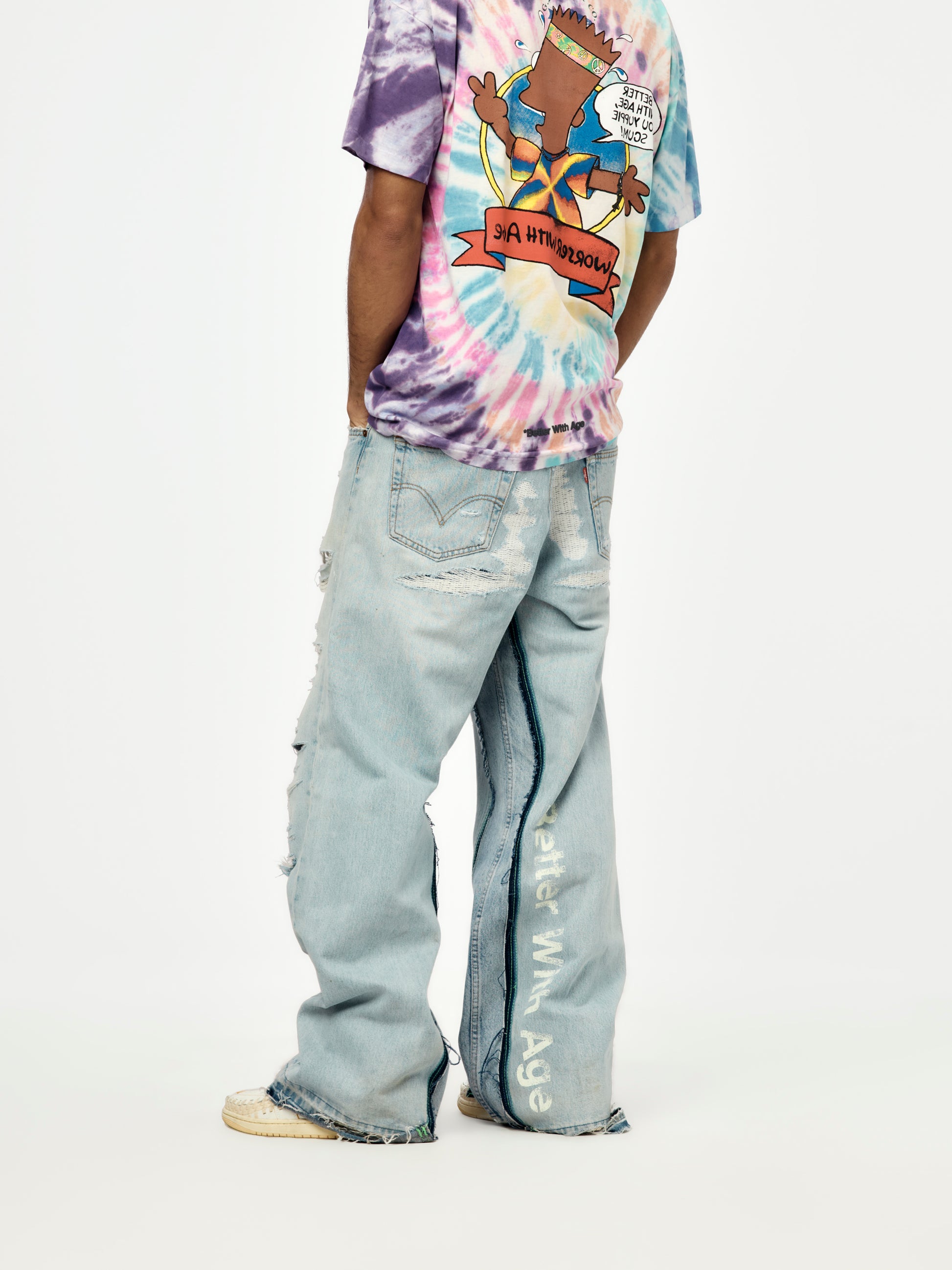 The Smoked Double-Wide Denim reworks vintage Levi’s 501s into a wider silhouette. Each pair features one-of-one fading, wear, and reconstruction details.