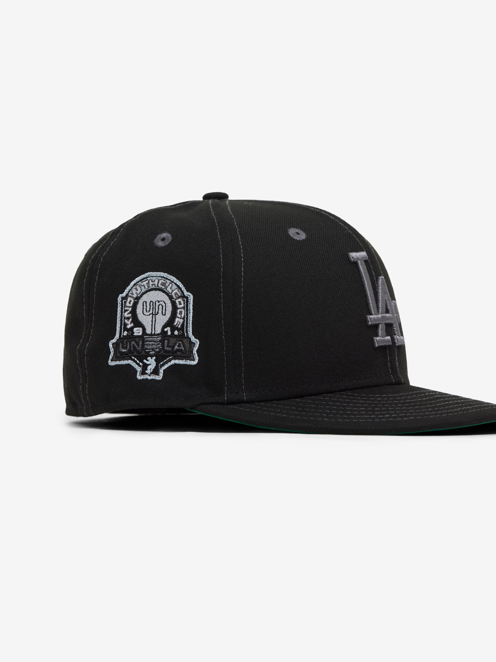 A timeless city insignia, remixed the Union way. The New Era x Union Dodgers Cap in Black brings an all-black tonal base with raised grey LA embroidery for a crisp, understated read. Finished with premium construction and classic green undervisor detailing, it delivers that perfect blend of sports heritage and street-level sensibility. A go-to staple for anyone who reps LA—whether you’re in the stands, on the block, or running your daily rotation.