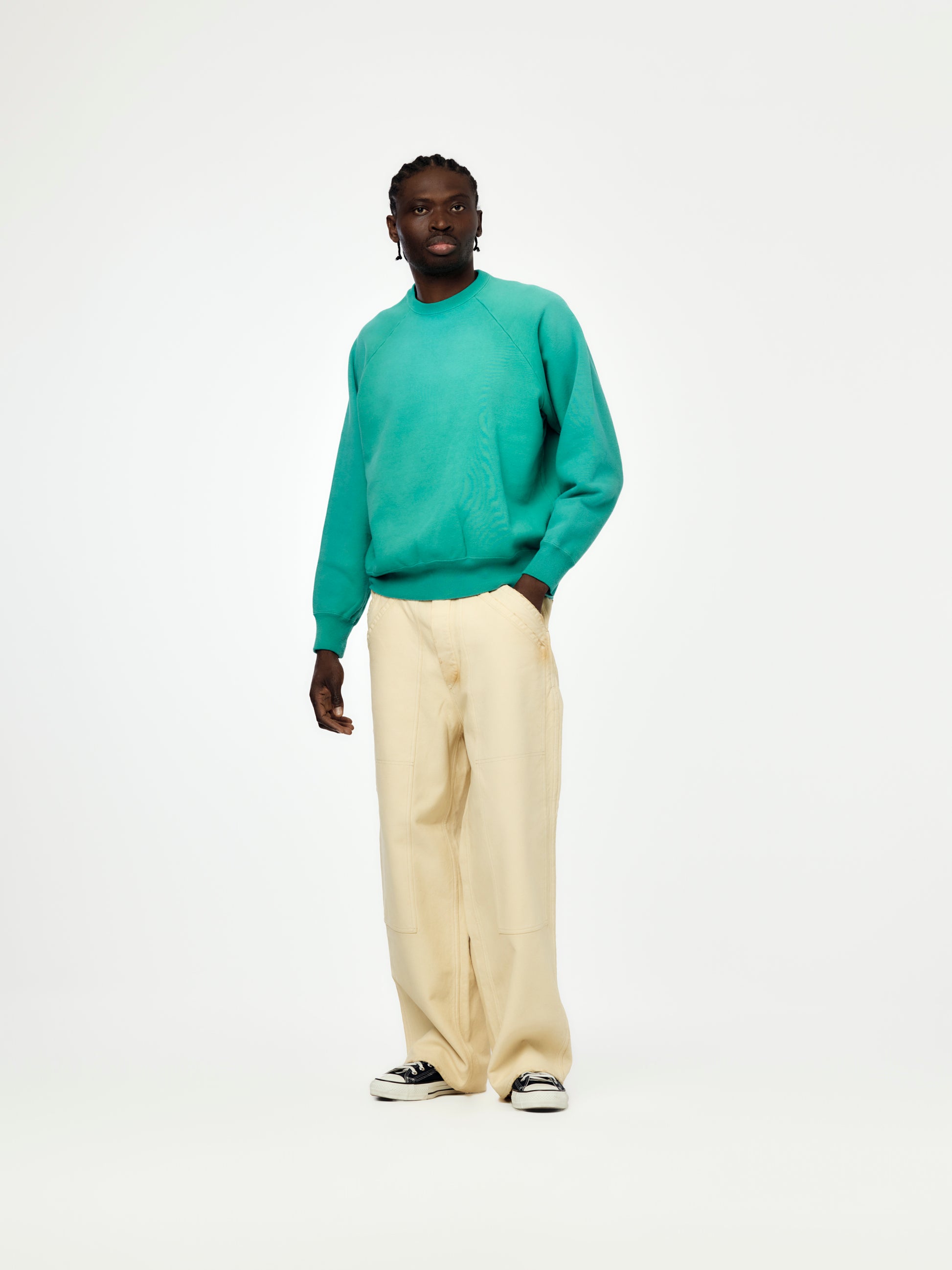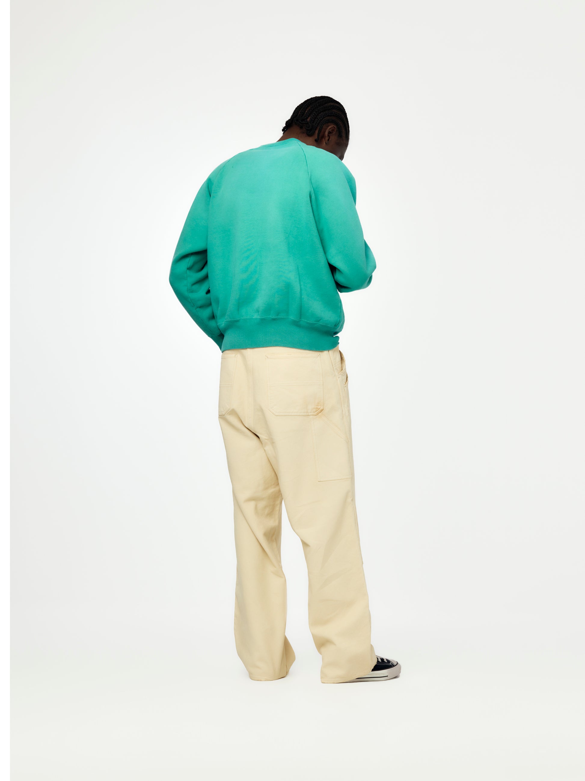 Workwear influence meets luxury fabric. These double-knee trousers use a silk-hemp blend that’s textured, breathable, and uniquely drapey. The beige wash and reinforced knee panels give them a broken-in, utilitarian feel with a quiet upscale edge.