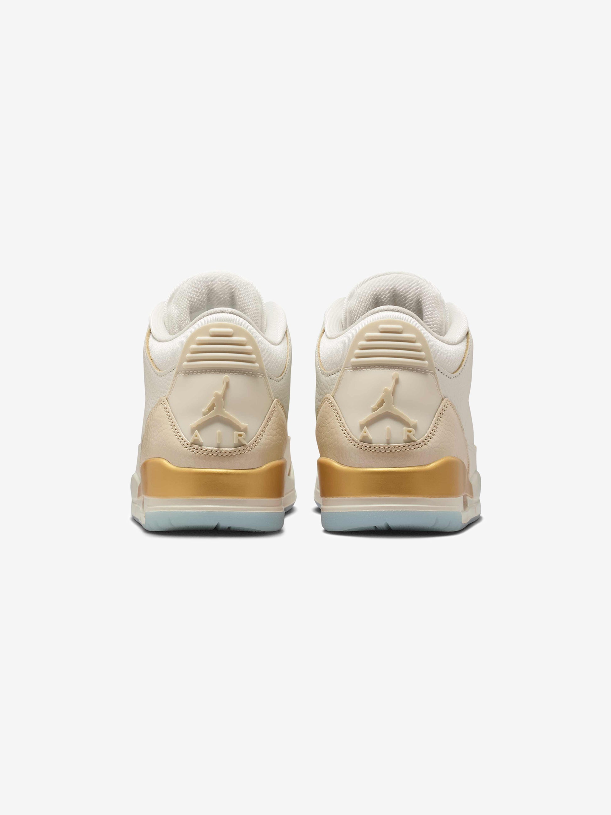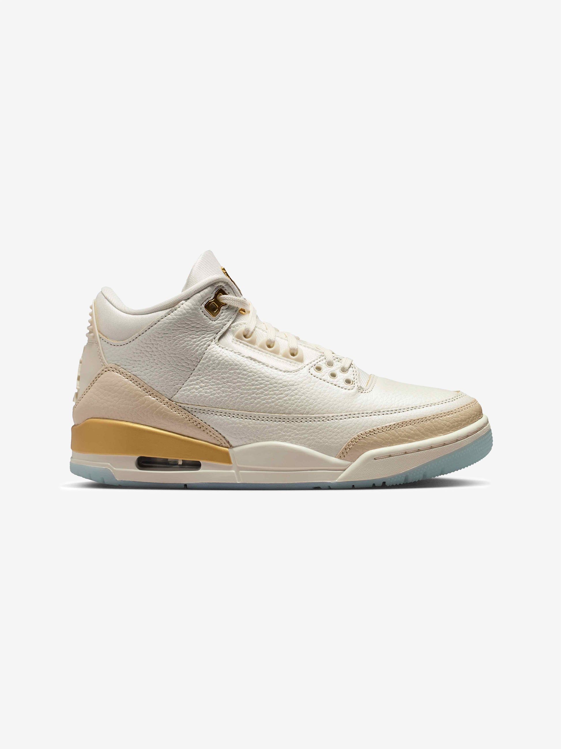 The Women’s Air Jordan 3 “Champagne & Oysters” pours a little luxury into a legacy silhouette. Jordan Brand flips the classic AJ3 script with soft Sail leather, grey suede in place of elephant print, and gold hits that nod to the name — subtle flex, big energy. An icy blue outsole cuts through with that modern polish, while the Air-cushioned midsole keeps the retro DNA intact.